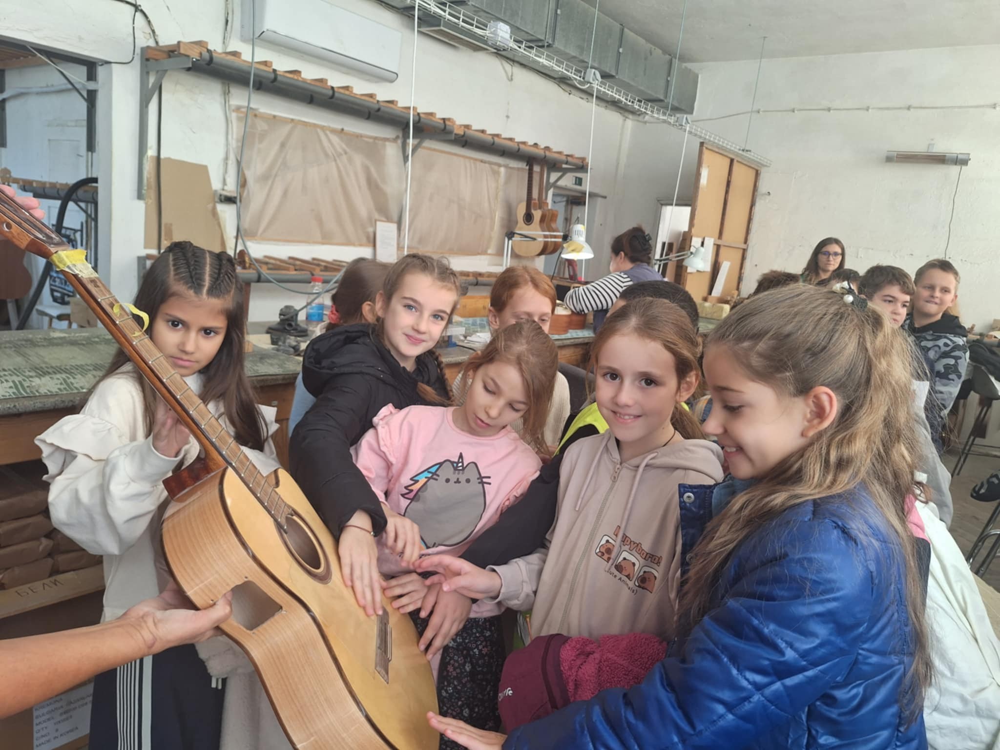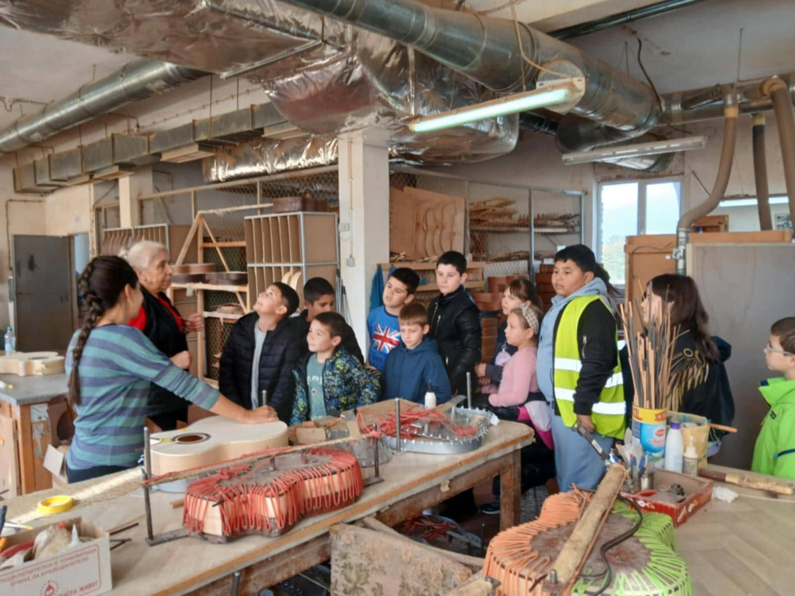 Малчуганите с интерес разглеждаха всяка част от китарата, научиха как се сглобява и с каква прецизност се изработва всеки детайл. Те бяха впечатлени от труда на специалистите, които с много внимание и любов създават висококачествени музикални инструменти.