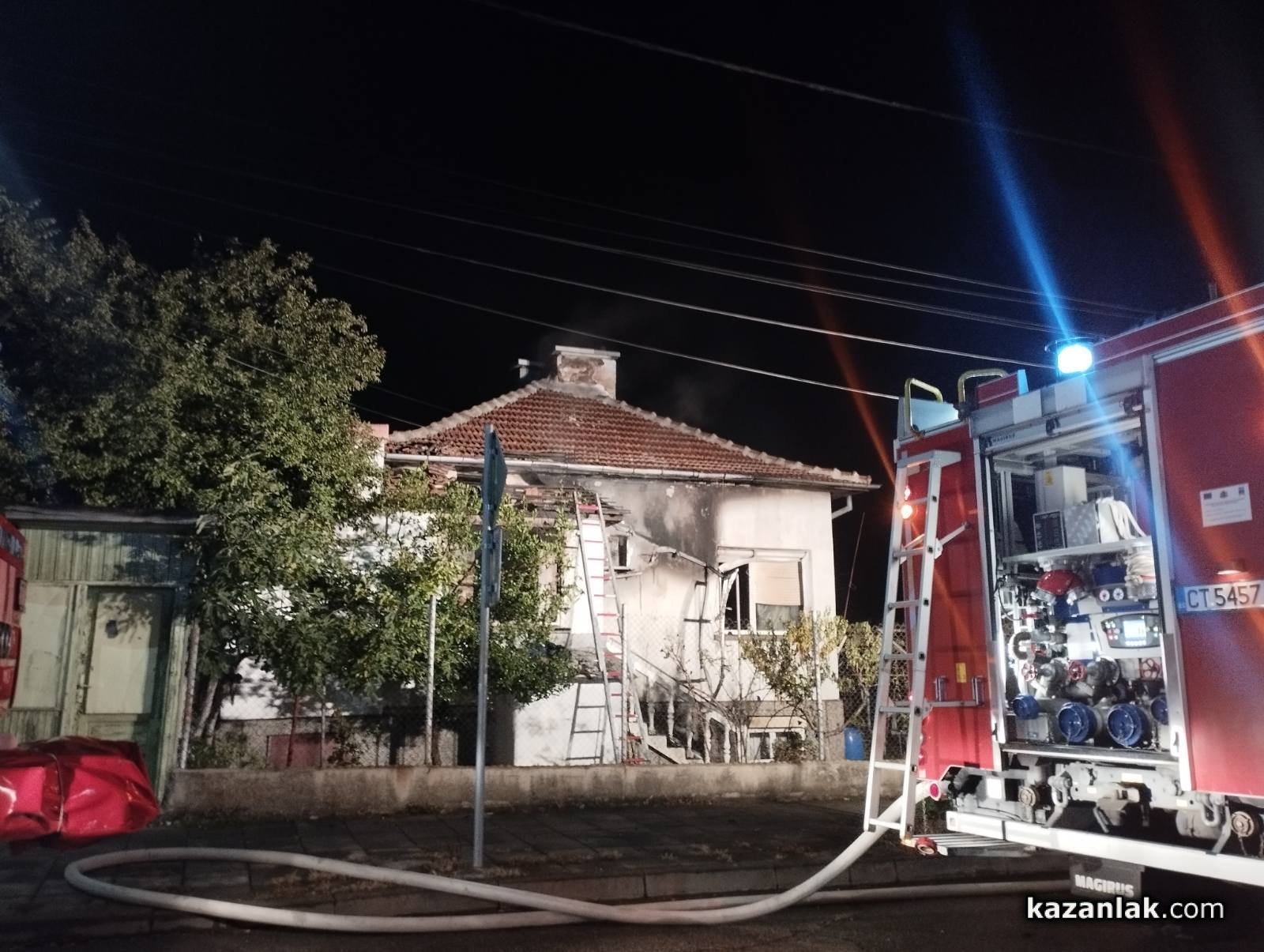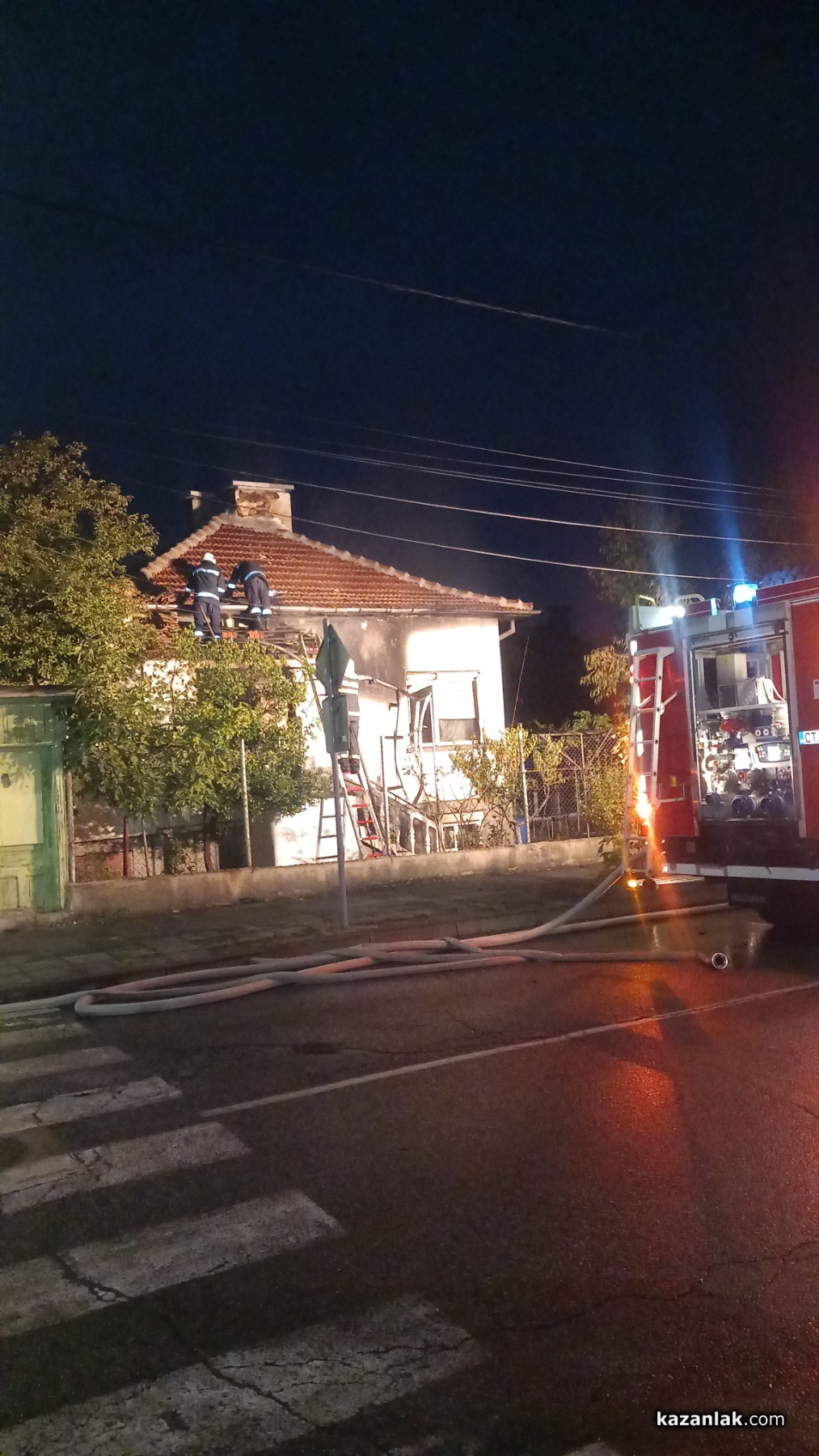 Пожар е избухнал в къща, намираща се на кръстовището на улиците „Стара планина“ и „Ал.Стамболийски“ в Казанлък, малко след 18.00ч днес. На място незабавно са се отзовали три екипа на пожарната и два екипа на полицията, които и към момента са на място.
