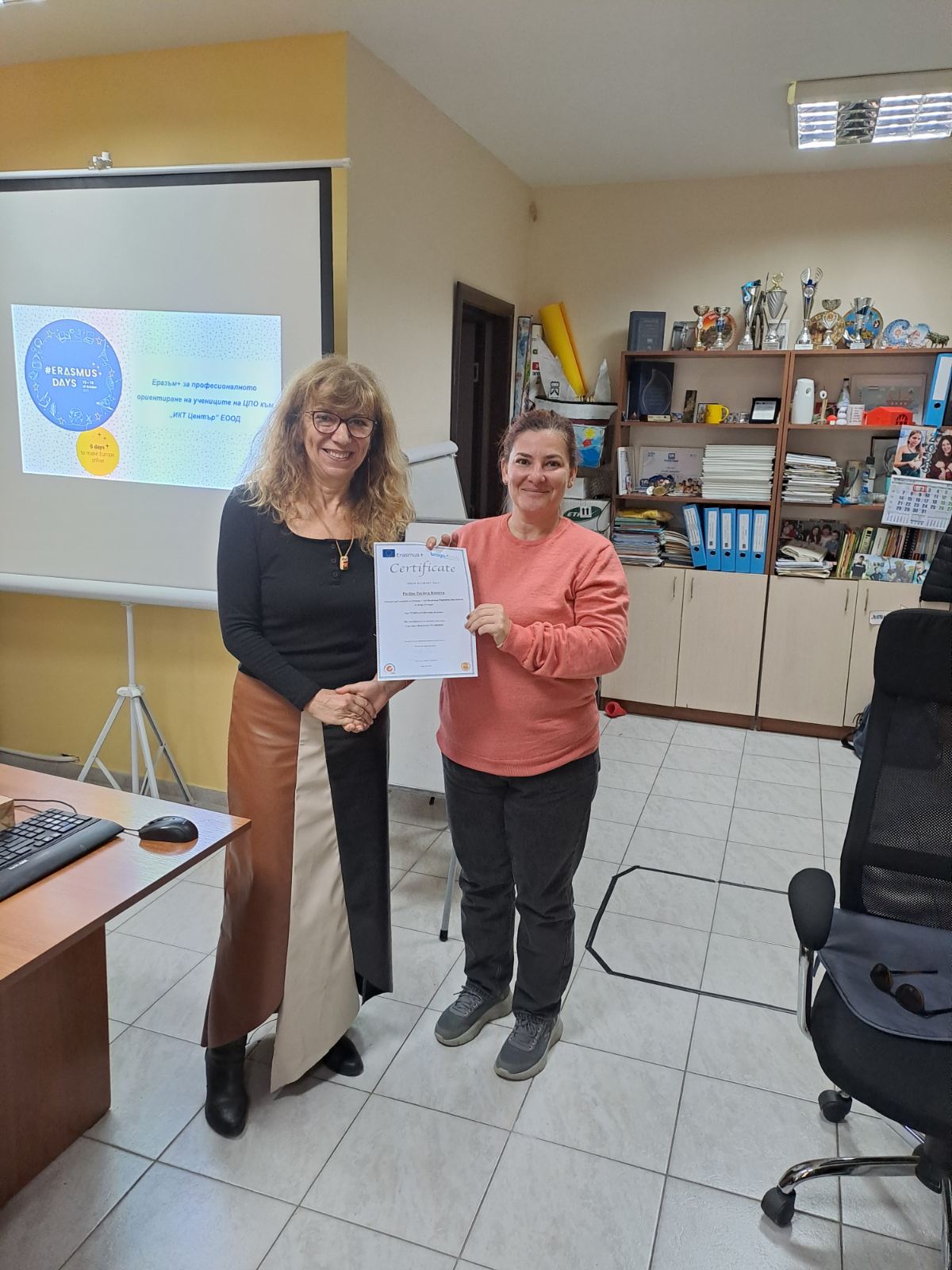 На 18 октомври, традиционно, в периода на европейското събитие "Дни на Еразъм", се събрахме на заключителна среща за споделяне опита по последния проект „Еразъм+“ и връчване на Сертификати и Европас документи. В осмия проект за мобилност, който се проведе в Португалия, се включиха 21 участници, които разшириха своя професионален и житейски кръгозор.