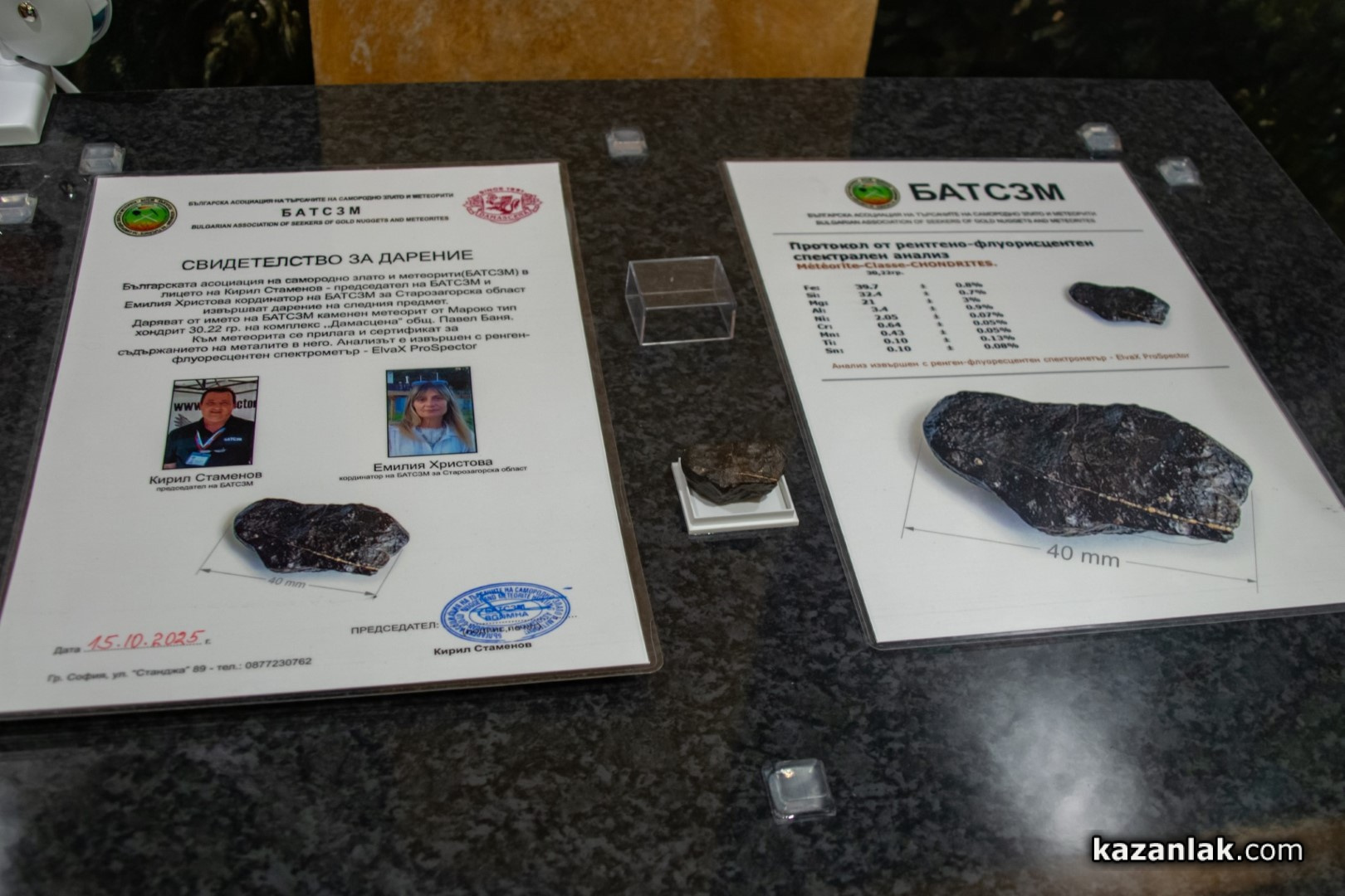 Дареният метеорит вече краси постоянната експозиция на „Дамасцена“ и привлича вниманието на посетителите, които имат възможност да се докоснат до истинска частица от необятния космос. Единственият досега намерен метеорит от член на Българската асоциация на търсачите на самородно злато и метеорити на територията на страната е т.нар. „Орлов дол“, открит в Старозагорска област, община Раднево, който е официално регистриран и вписан в търговския регистър.