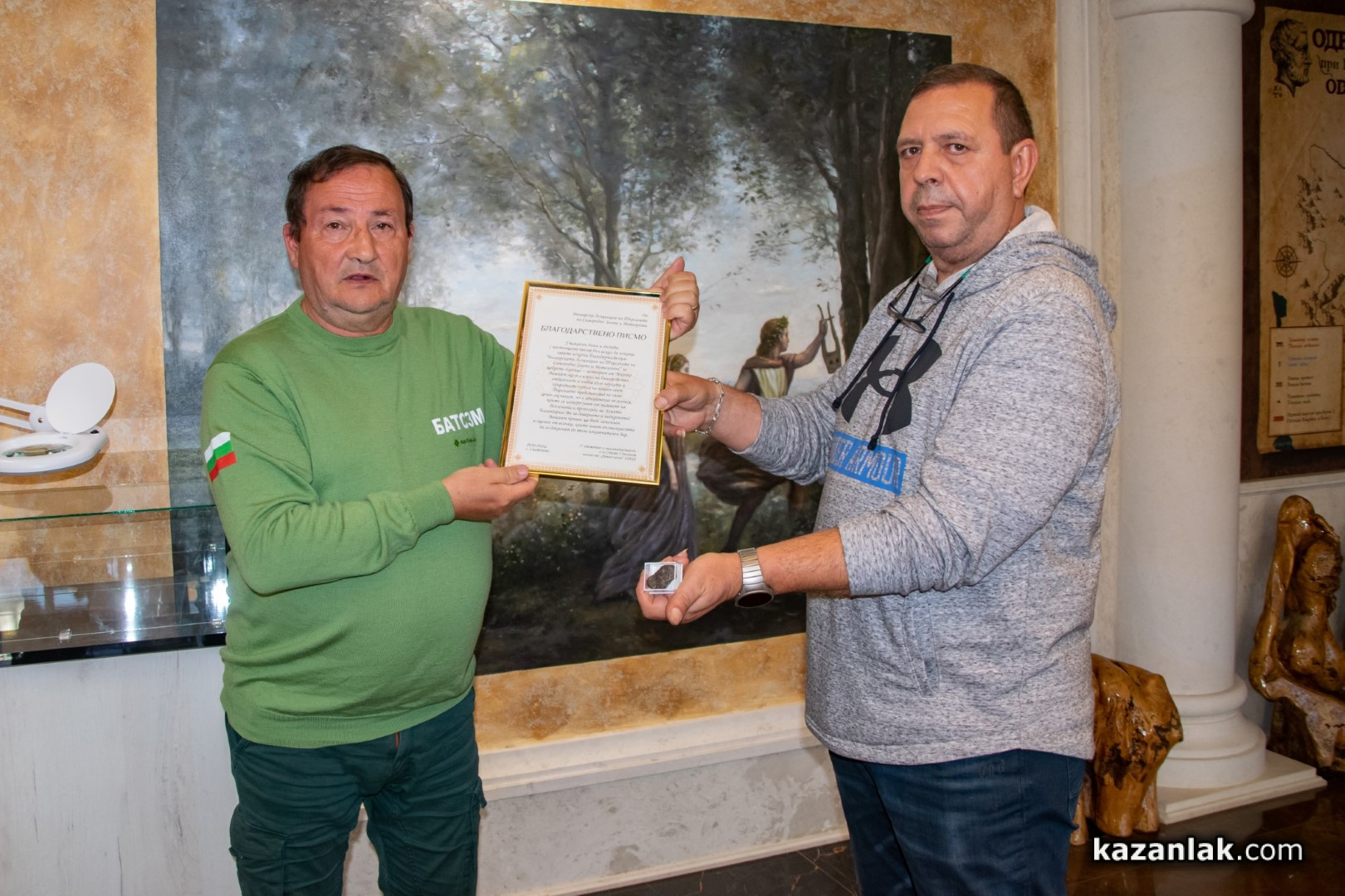 По време на церемонията Кирил Стаменов изрази своята благодарност за доброто сътрудничество с господин Стоянов и комплекс "Дамасцена", който е основен спонсор на Българската асоциация на търсачите на самородно злато и метеорити в региона.