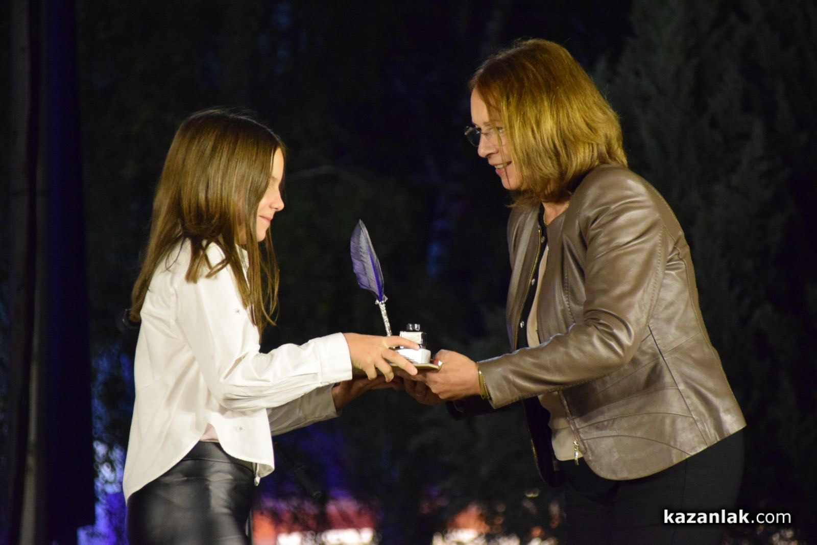 Кметът Галина Стоянова застана пред туптящото сърце на съвременните будители и отправи благодарност:към най-малките- децата на Казанлък, към учениците, към учителите, директорите на просветните звена и културните институти, които с факлите и портретите на будителите осветиха пътя на съвременните будители, които бяха удостоени с грамота, перо и мастило и книга на най- известните български будители.