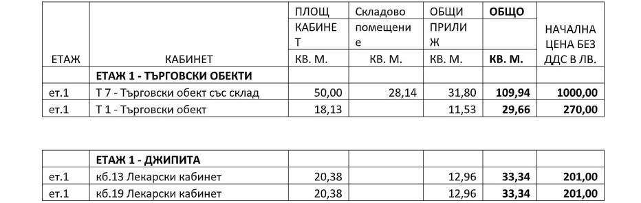 1.На ул.“Стара планина“ № 12 гр.Казанлък, които ще се използват за лекарски кабинети: