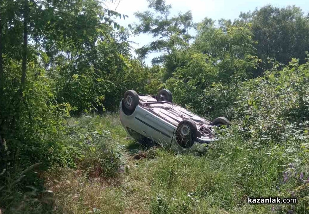 По първоначална информация е самокатастрофирал л.а."Нисан", управляван от 68-годишна жена, като колата излиза в дясно по посоката си на движение в крайпътна нива.