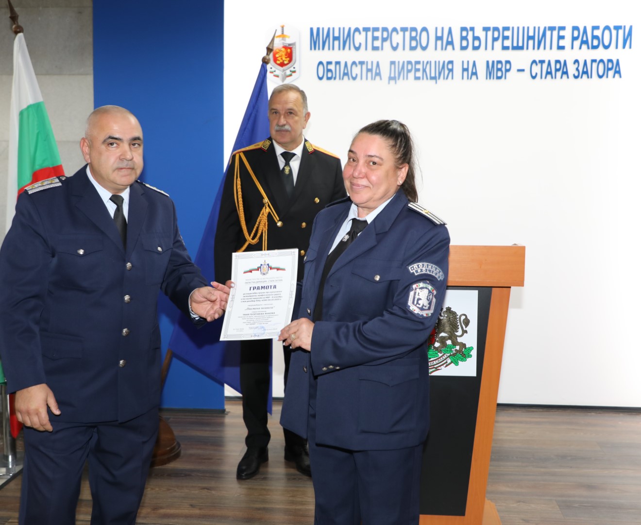 Директорът на ОДМВР-Стара Загора Старши комисар Красимир Христов награди 107 служители, от тях един служител на РУ-Казанлък - с парична награда и 106 служители от различни структурни звена на ОДМВР-Стара Загора с „Писмена похвала“ за постигнати високи професионални резултати.