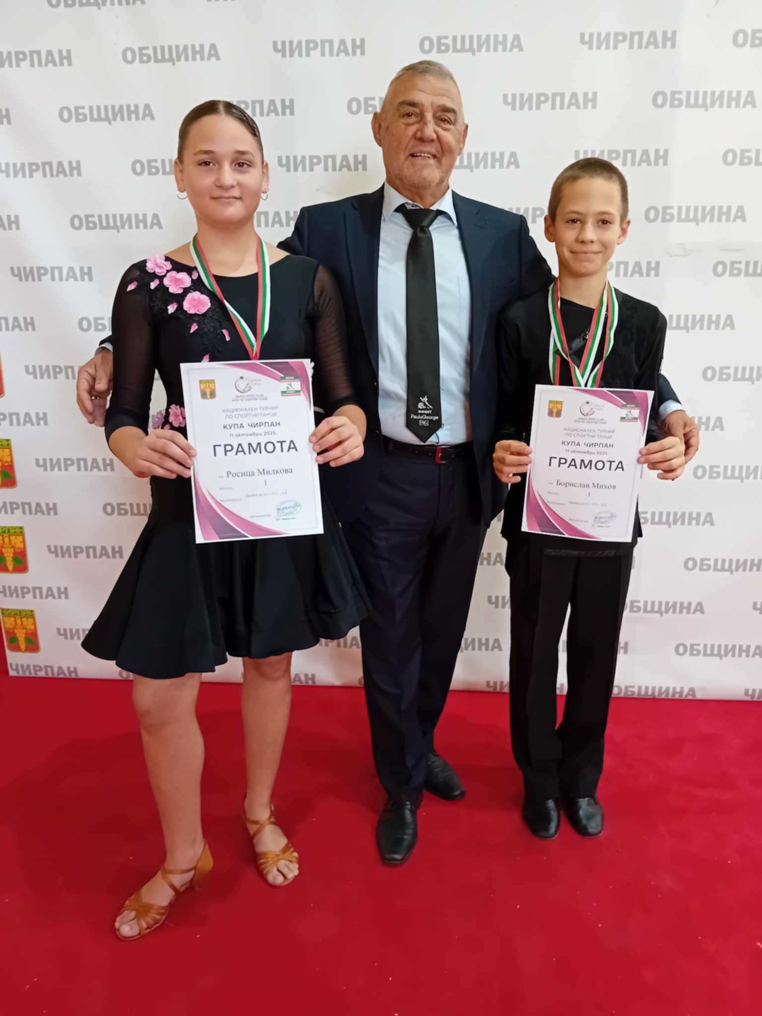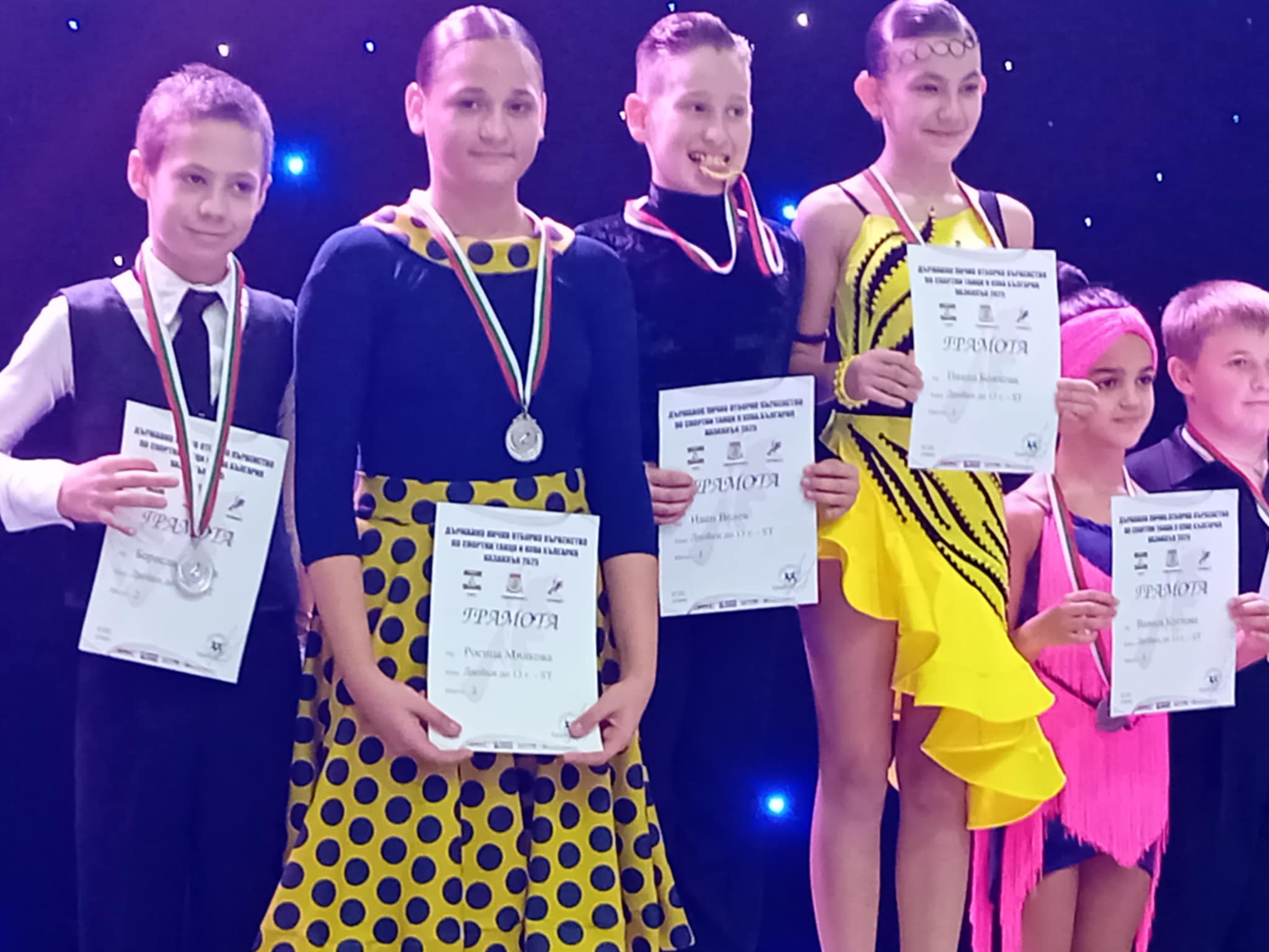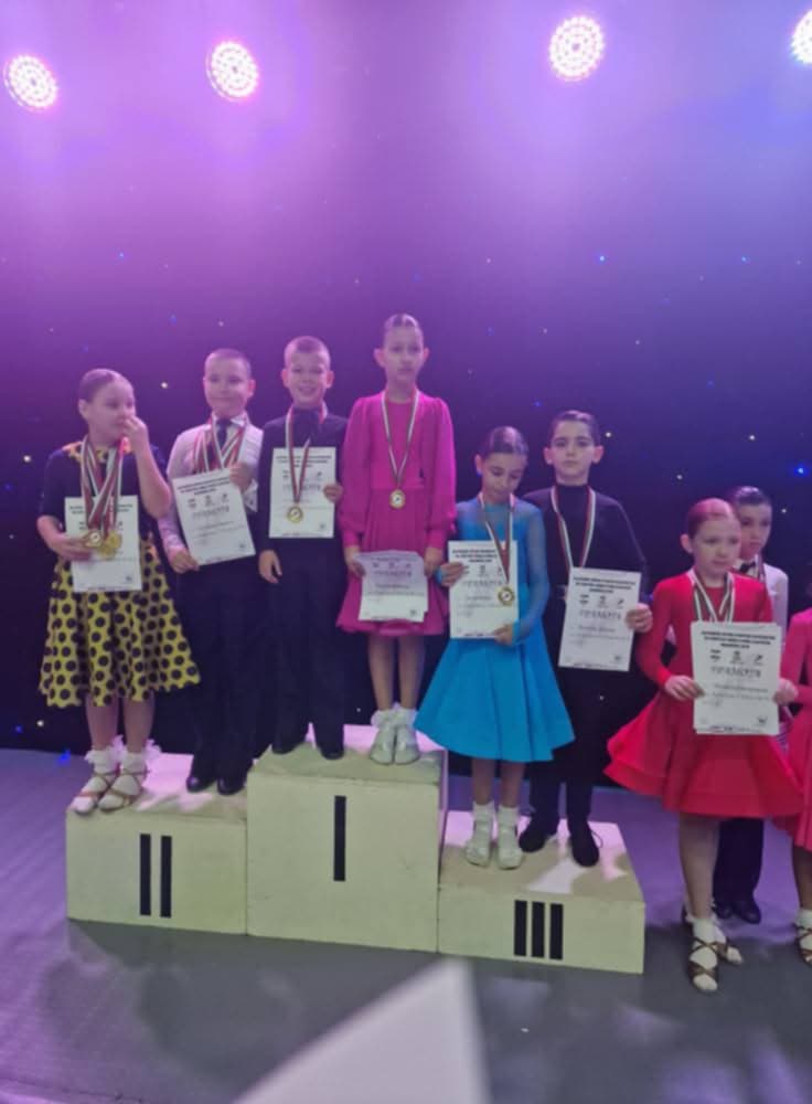 Теодор Бисеров и Никол Тюлева клас 9Е се окичиха със златните медали. Златни медали завоюваха и Тунай Акгюл и Ивайла Минчева на купа ча-ча-ча, румба и джайв. Светослав Иванов и Цветелина Ганева спечелиха златни медали при двойки до 9 год. - латино и стандарт, както и на купа - валс, танго и куикстеп.