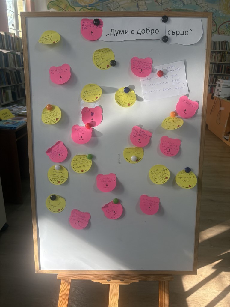 През цялата седмица, предшестваща самия ден, посетителите на различните отдели на ОБ „Искра” имаха възможност да отправят своите послания на импровизираната стена на добрите думи „Думи с добро сърце”.