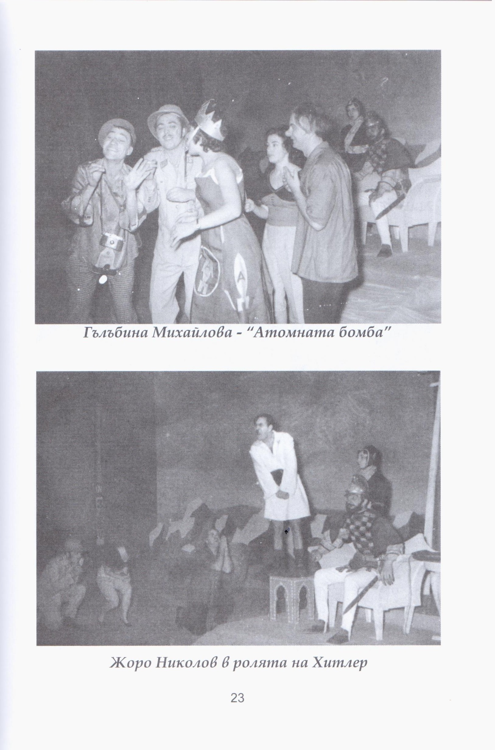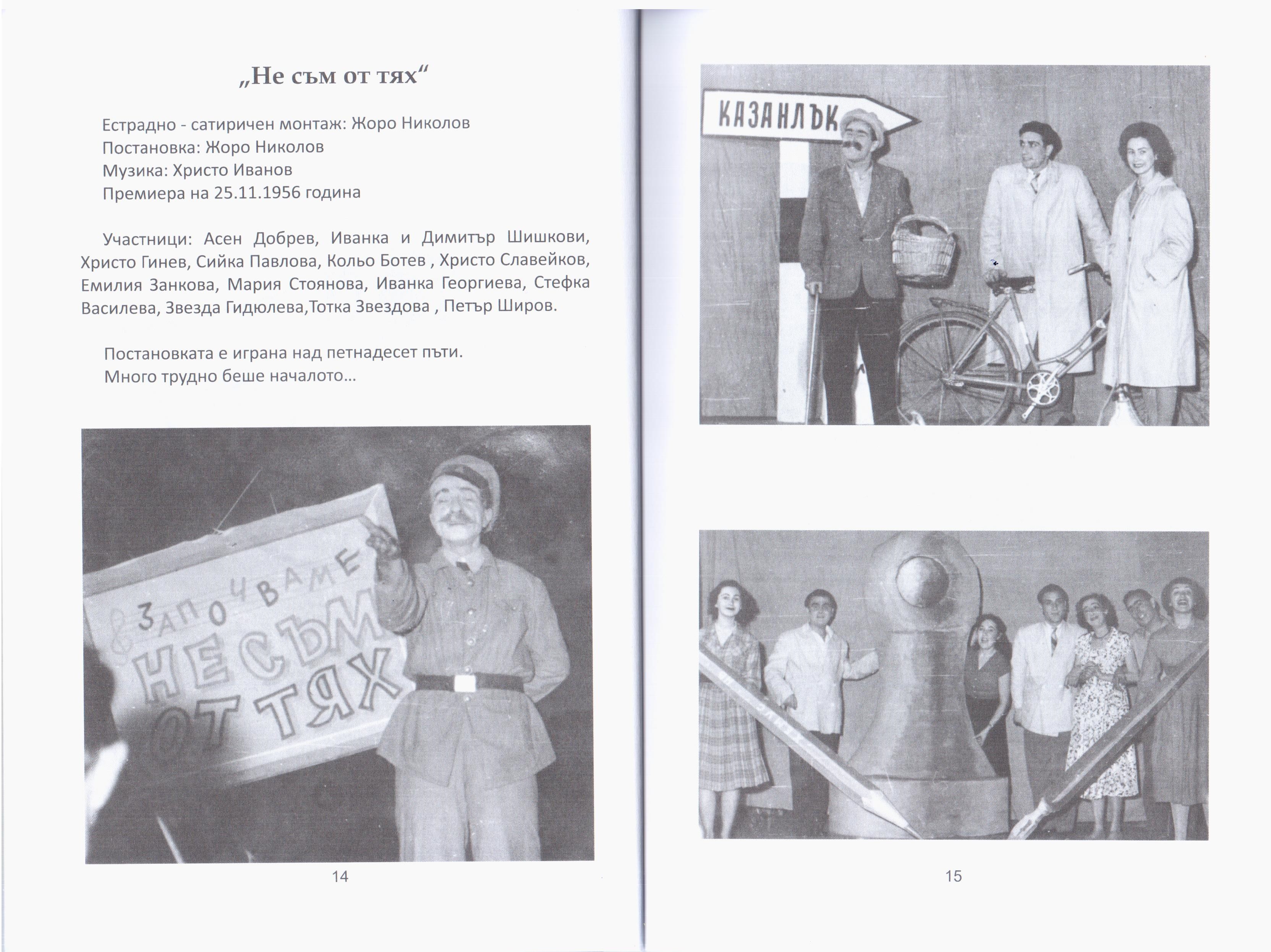 Приложените към статията снимки са от книгата на Гълъбина Михайлова „60 години казанлъшка сатира”. Тази книга, книгата на Иван Събчев „Усмивката на Жоро”, както и статии от различни години за Жоро Николов Ви очакват в Читалня на Общинска библиотека „Искра”, за да се запознаете с една от казанлъшките легенди на миналия век.
