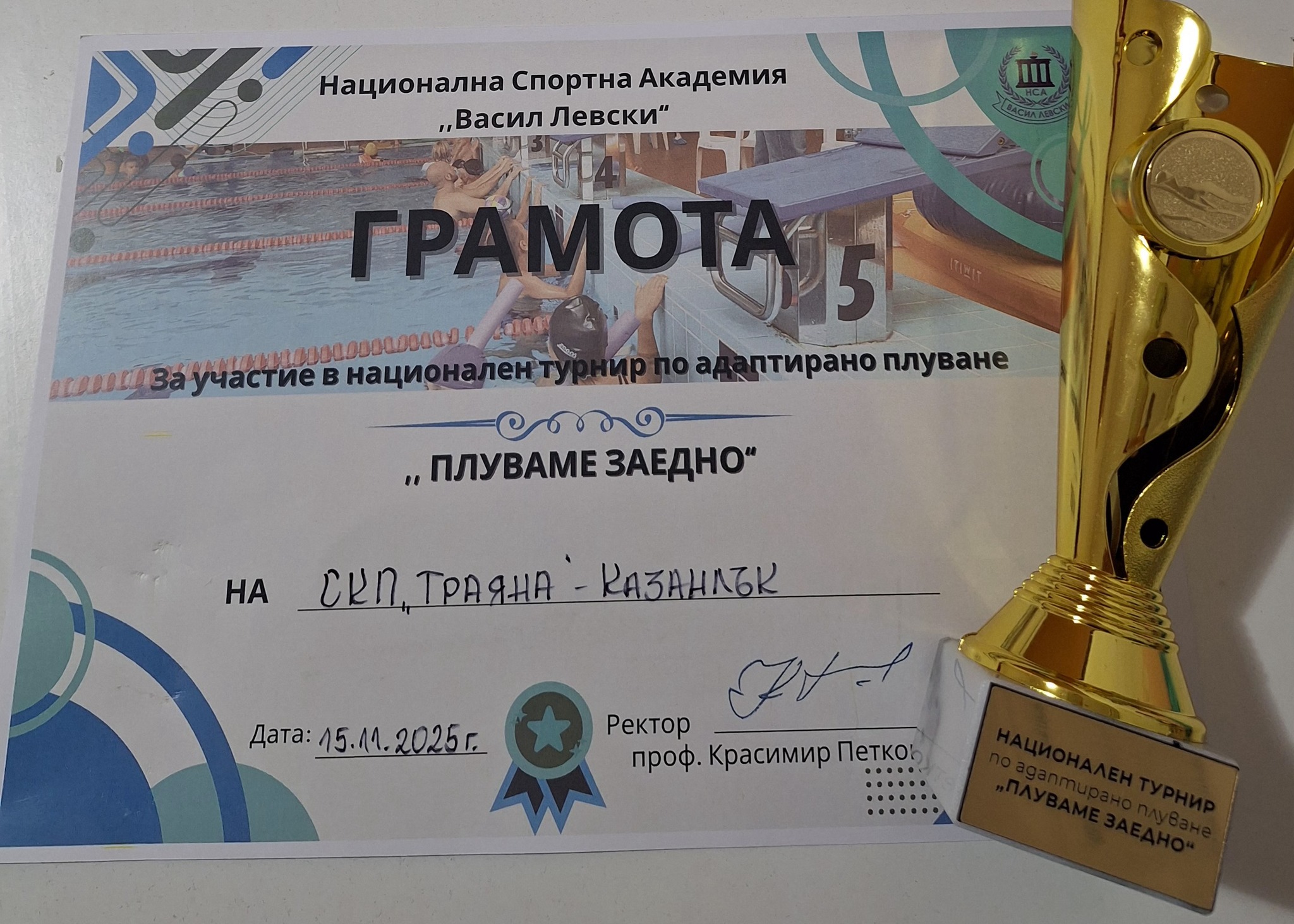 Казанлъшките плувци - Христослава Колева, Димитра Димитрова, Светослав Шипчанов, Самуил Трайков, Мартин Узунов, с треньор Теодора Петкова, се представиха отлично, завоювайки грамоти, медали и отборна купа.