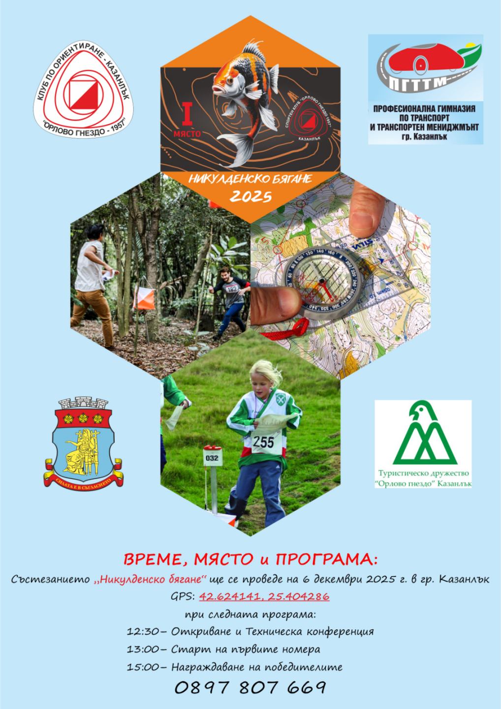 Тази събота, 6 декември в Казанлък ще се проведе състезание по спортно ориентиране „Никулденско бягане“. Домакин на проявата е Професионалната гимназия по транспорт и транспортен мениджмънт в града.