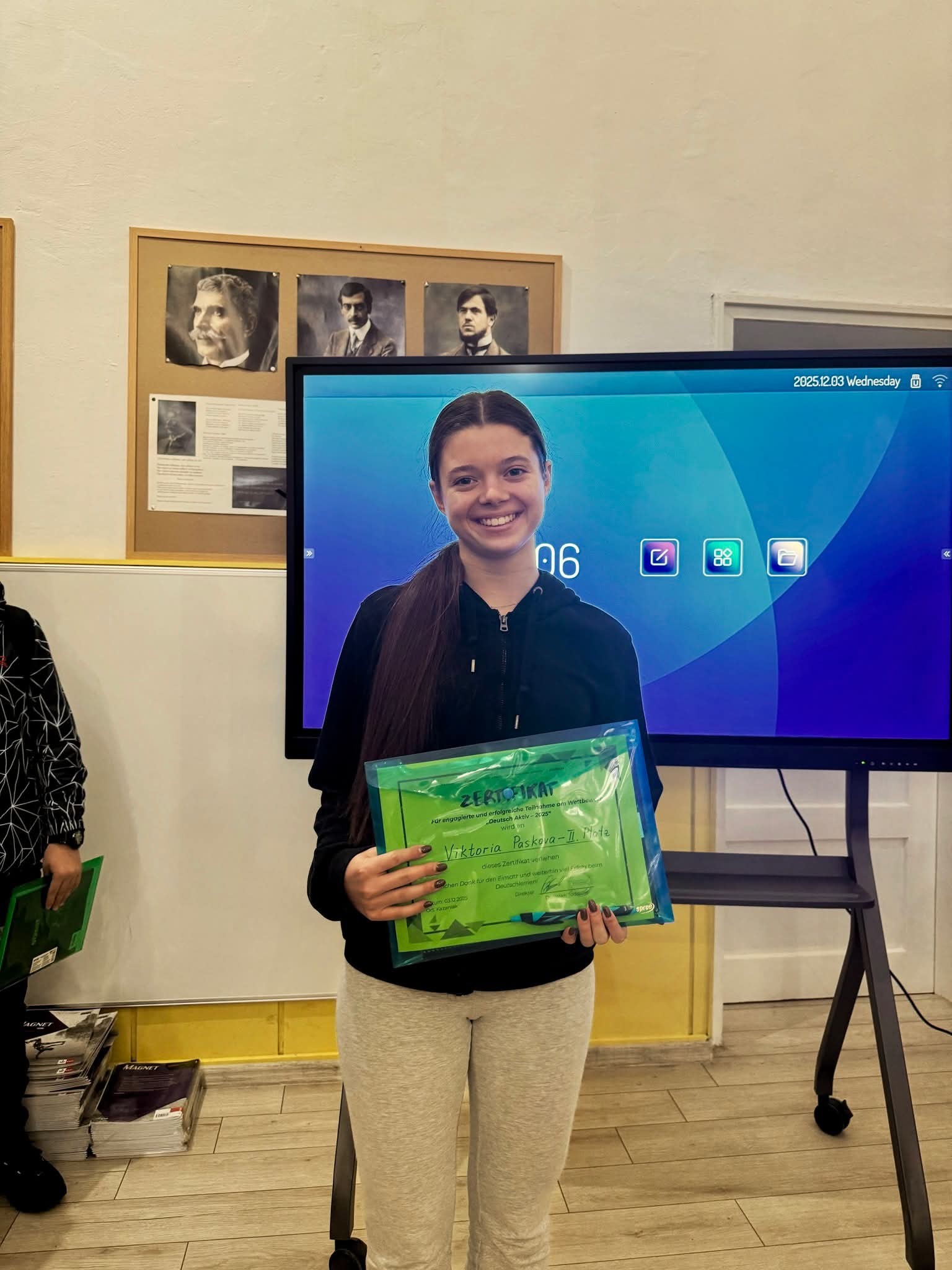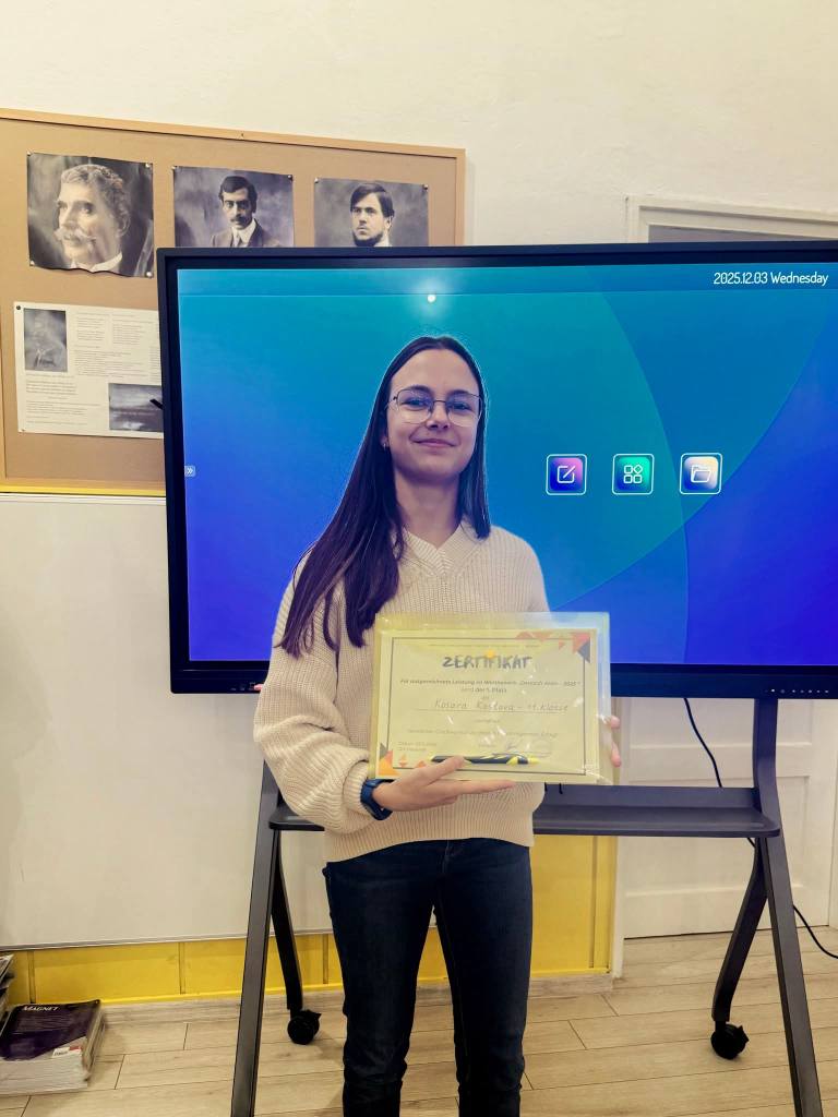 На 03.12.2025 г. в конферентната зала на Профилирана хуманитарна гимназия „Св. Св. Кирил и Методий“, гр. Казанлък се проведе състезанието по немски език „Deutsch Aktiv – Немски в действие!“.