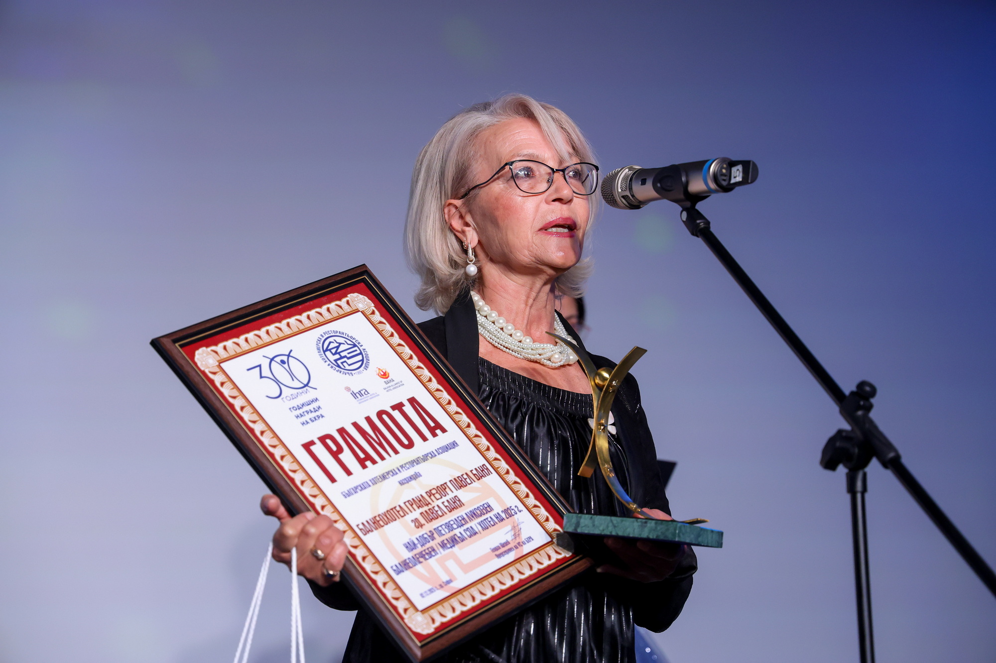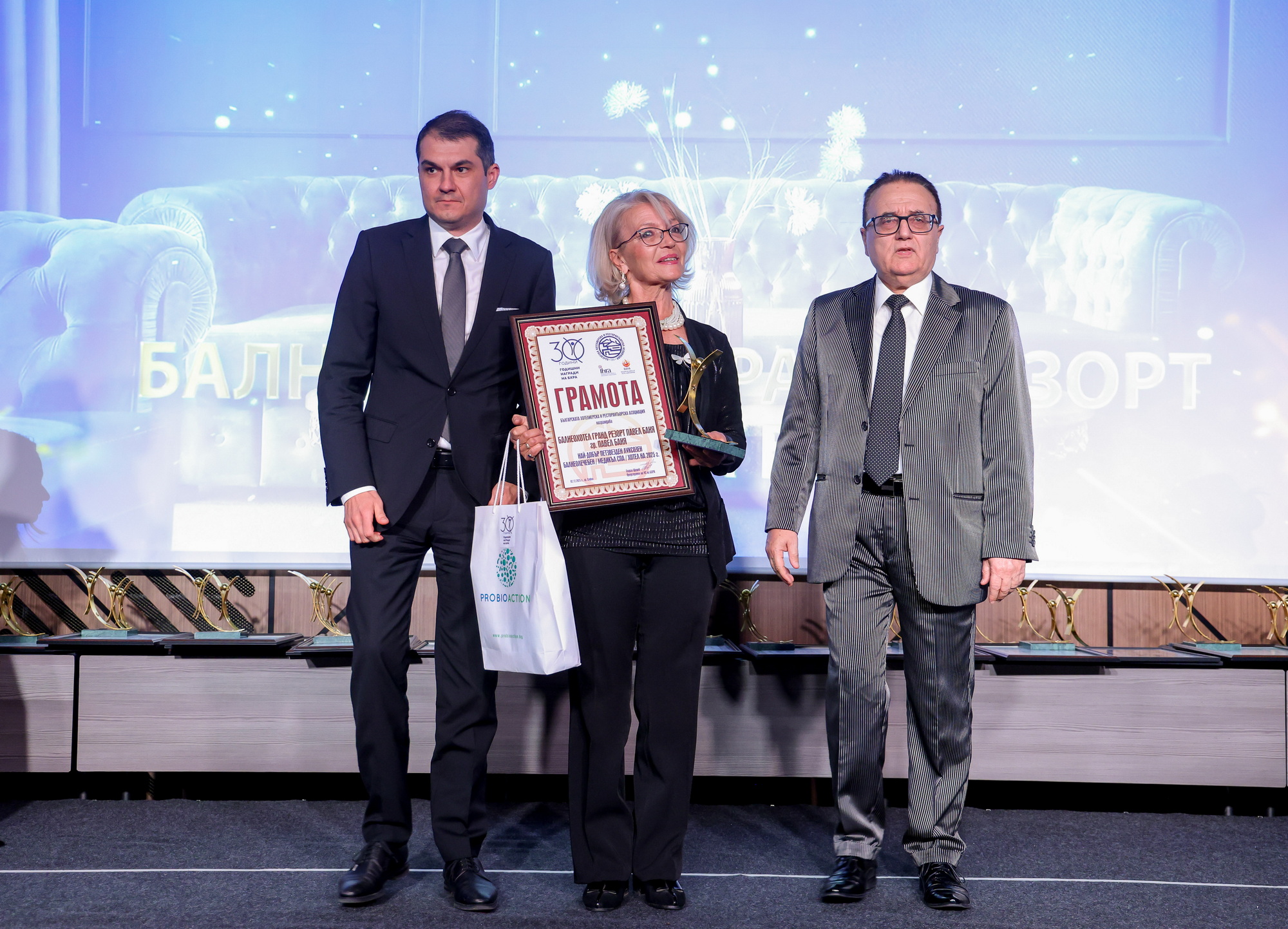 Изключително престижното отличие получи Галина Стефанова - Медикал и СПА мениджър на Дома на здравето на Павел баня, а статуетката бе връчена от представители на висшия ешалон на туризма у нас.