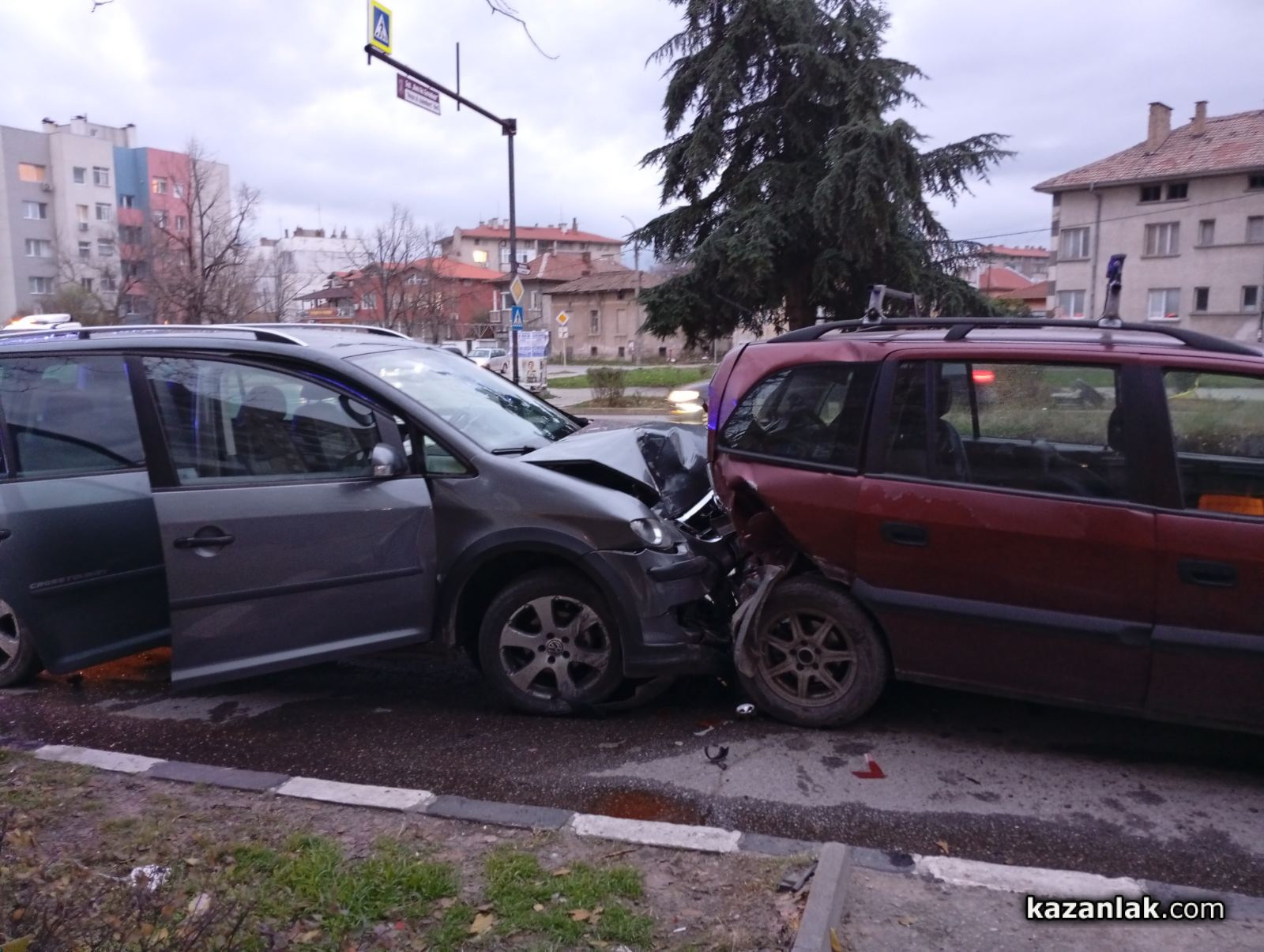 Верижна катастрофа е станала малко преди 17:00 часа на бул. „Княз Александър Батенберг“ в Казанлък, западно от бензиностанция "Шел".
