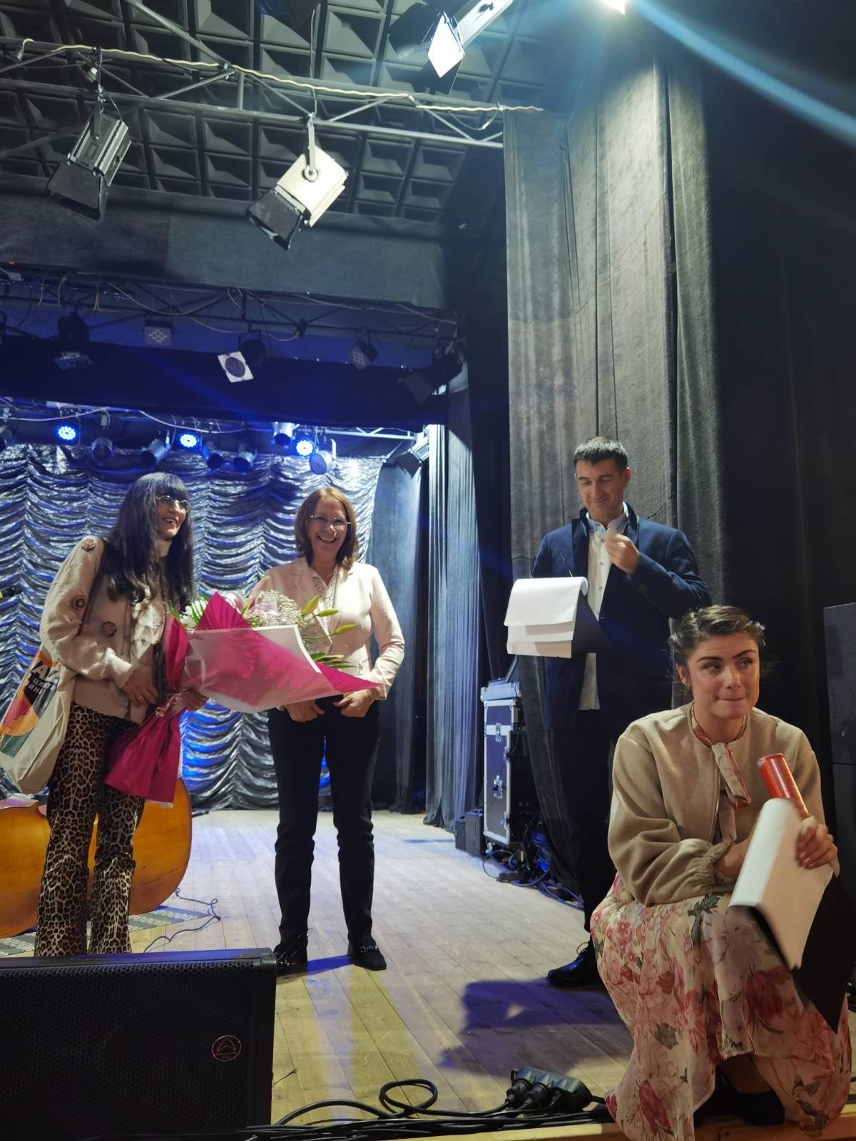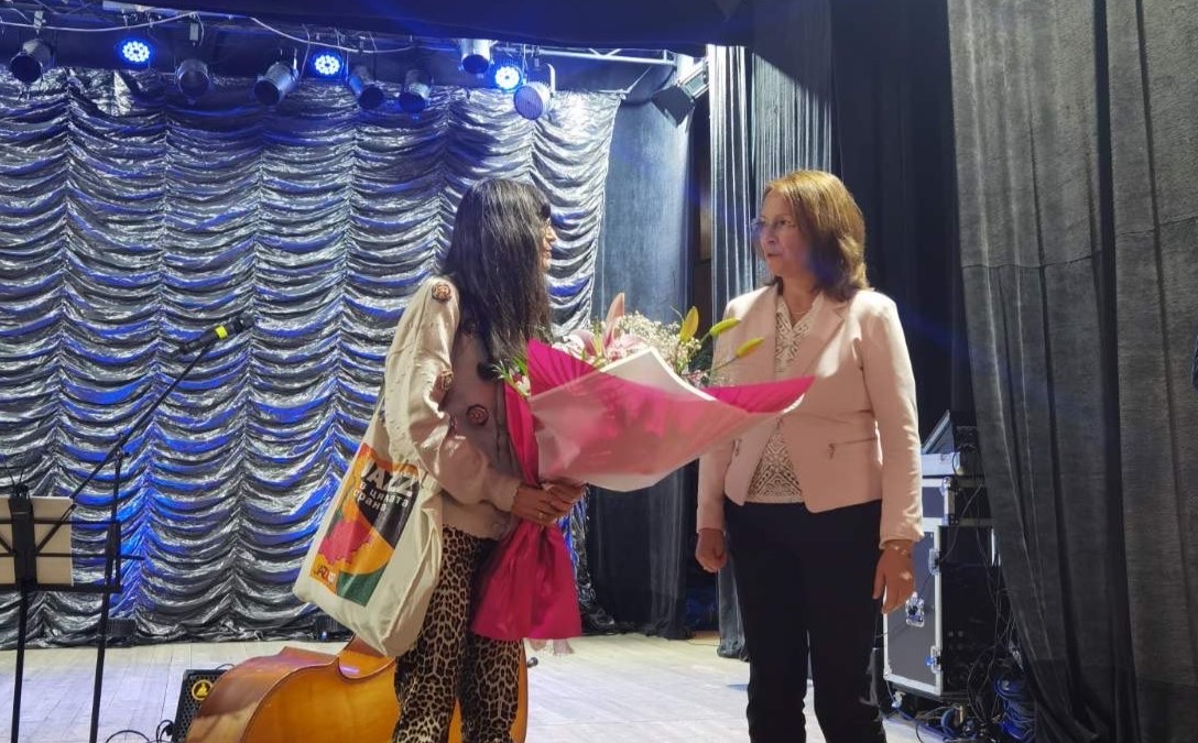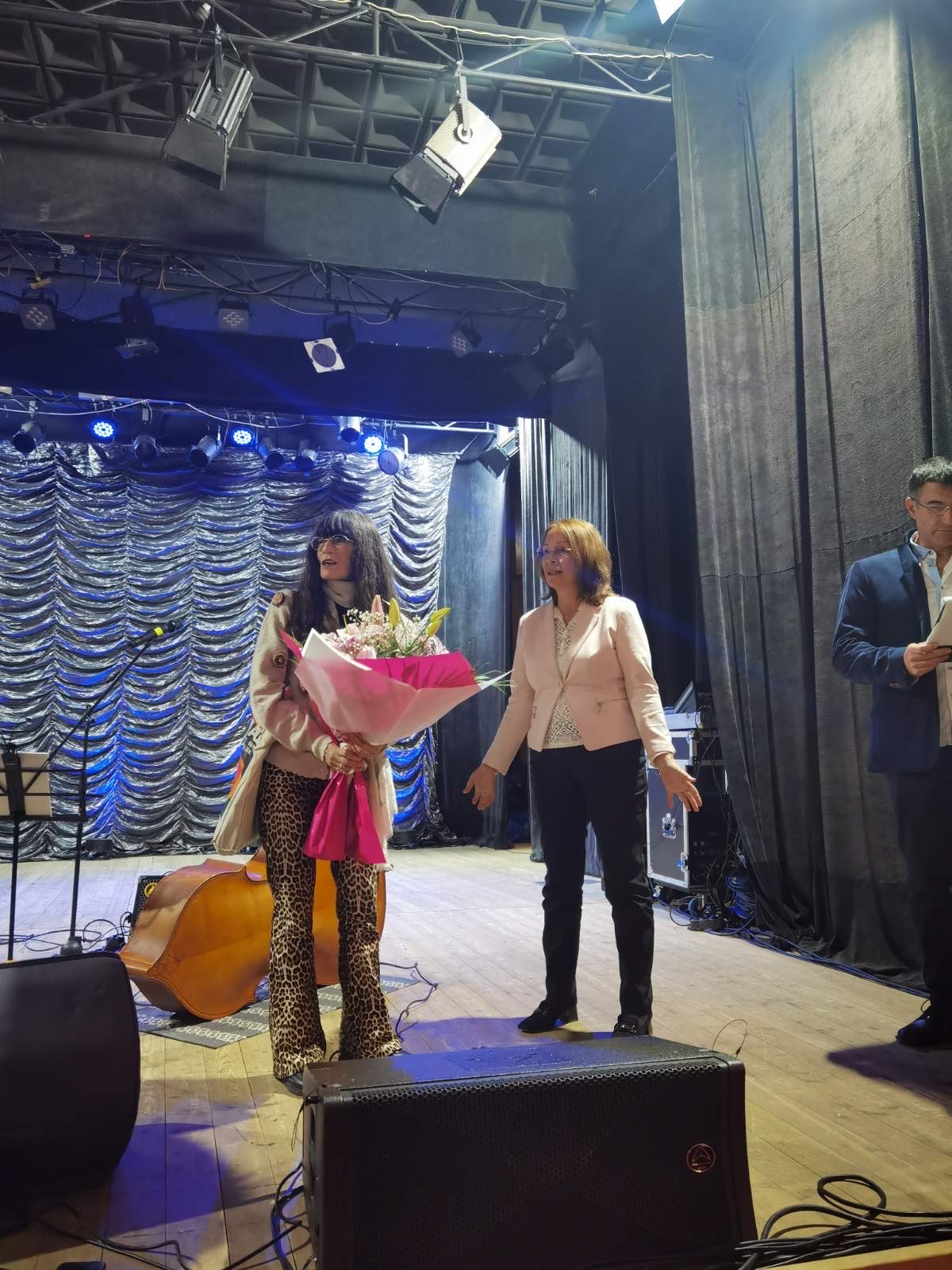 Кметът на Община Казанлък Галина Стоянова лично поздрави и поднесе цветя на певицата Надя Тончева по повод концерта ѝ “От Париж до Неапол“.