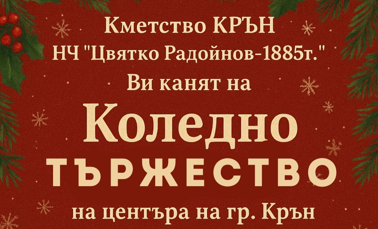 Кметство Крън и Народно читалище „Цвятко Радойнов-1885“ организират Коледно тържество на 11 декември в центъра на града. Празничната програма започва в 16:00 часа с Коледен базар.