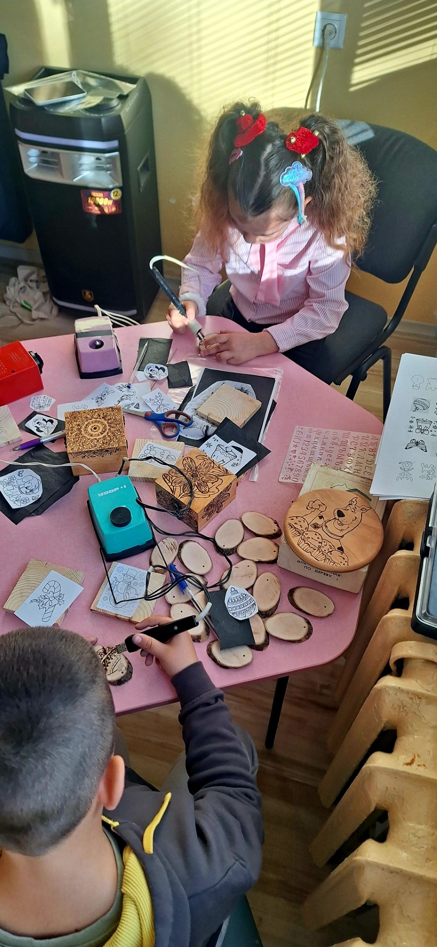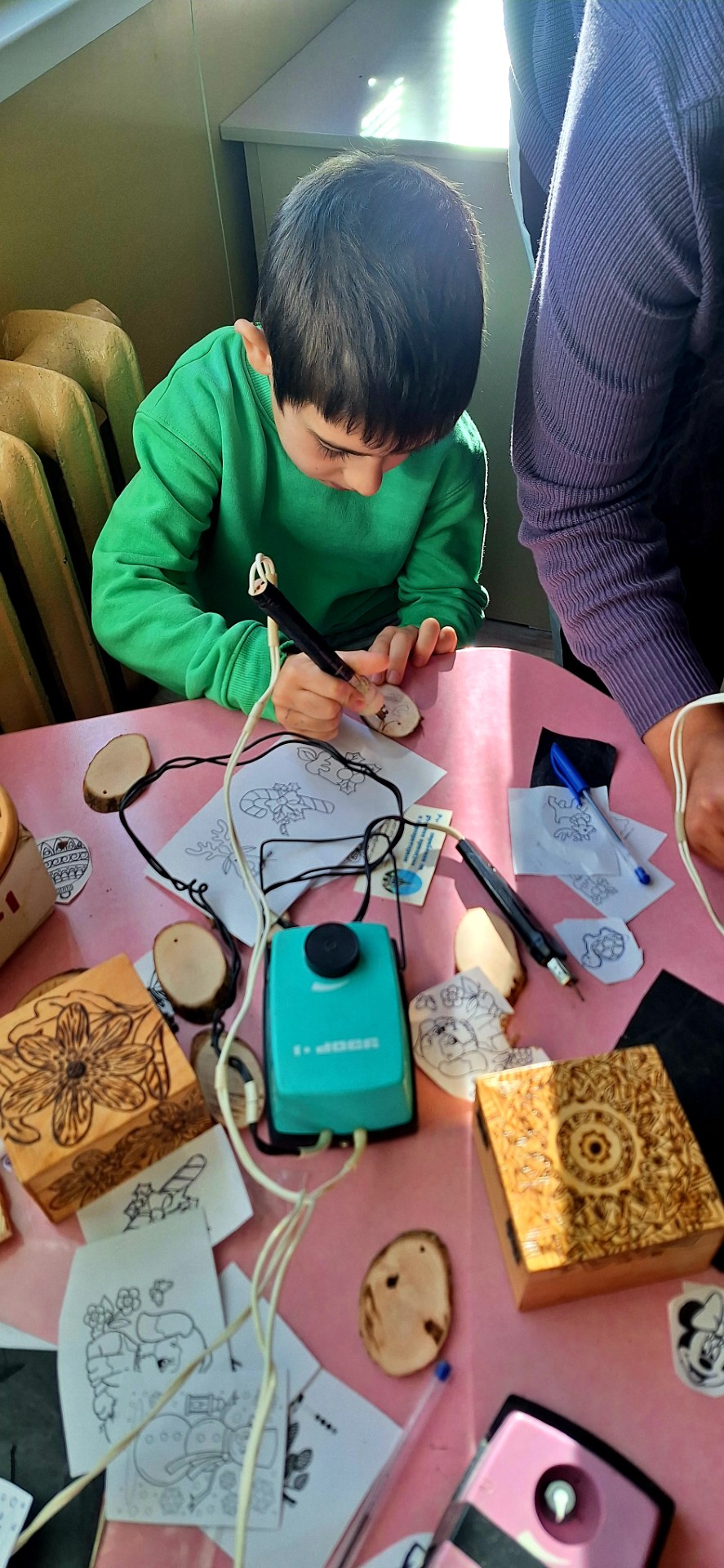 Събитието, организирано в партньорство с НЧ „Светлина-1861“ – гр. Шипка, пренесе учениците от 1-ви до 4-ти клас в света на старите майстори. Вместо обичайните учебни пособия използваха прежда, пирограф, дървени заготовки, восък и плат.