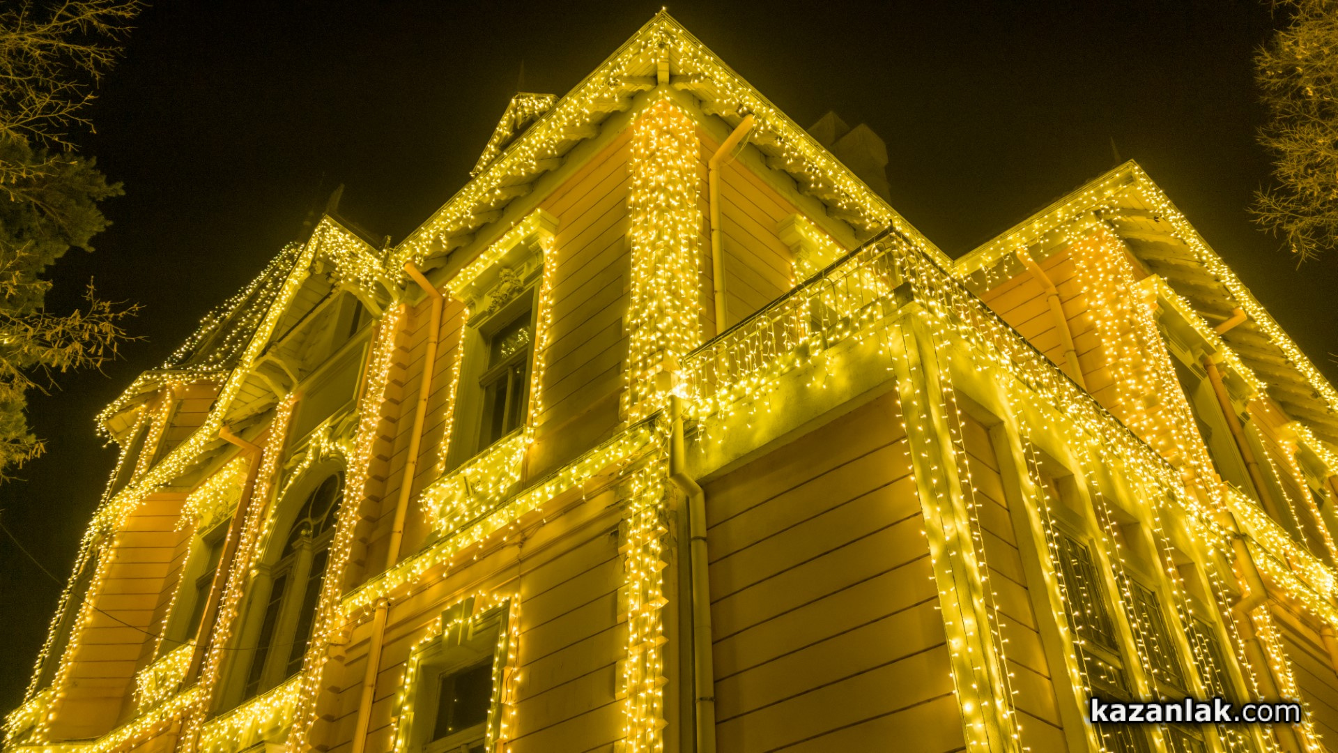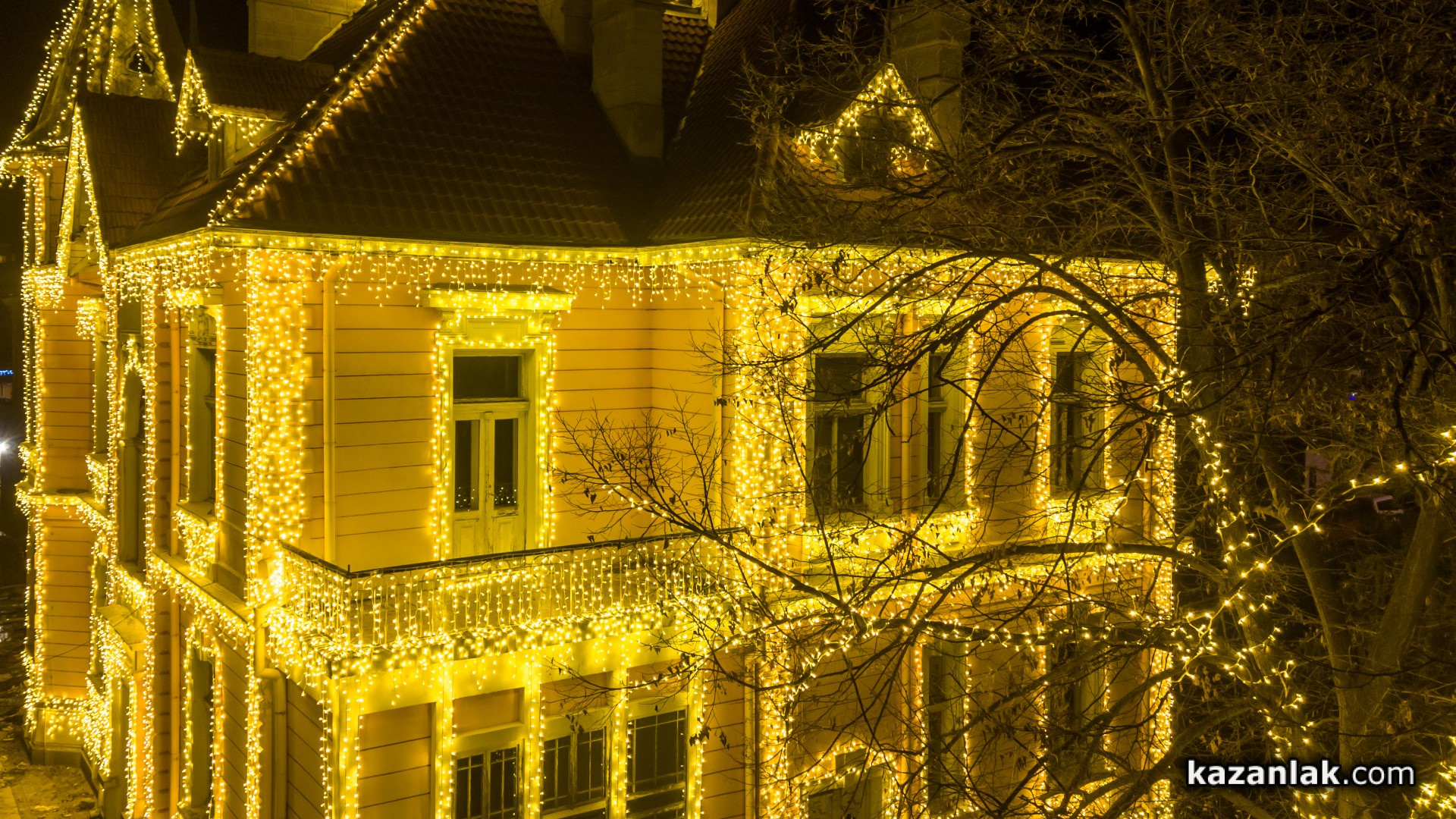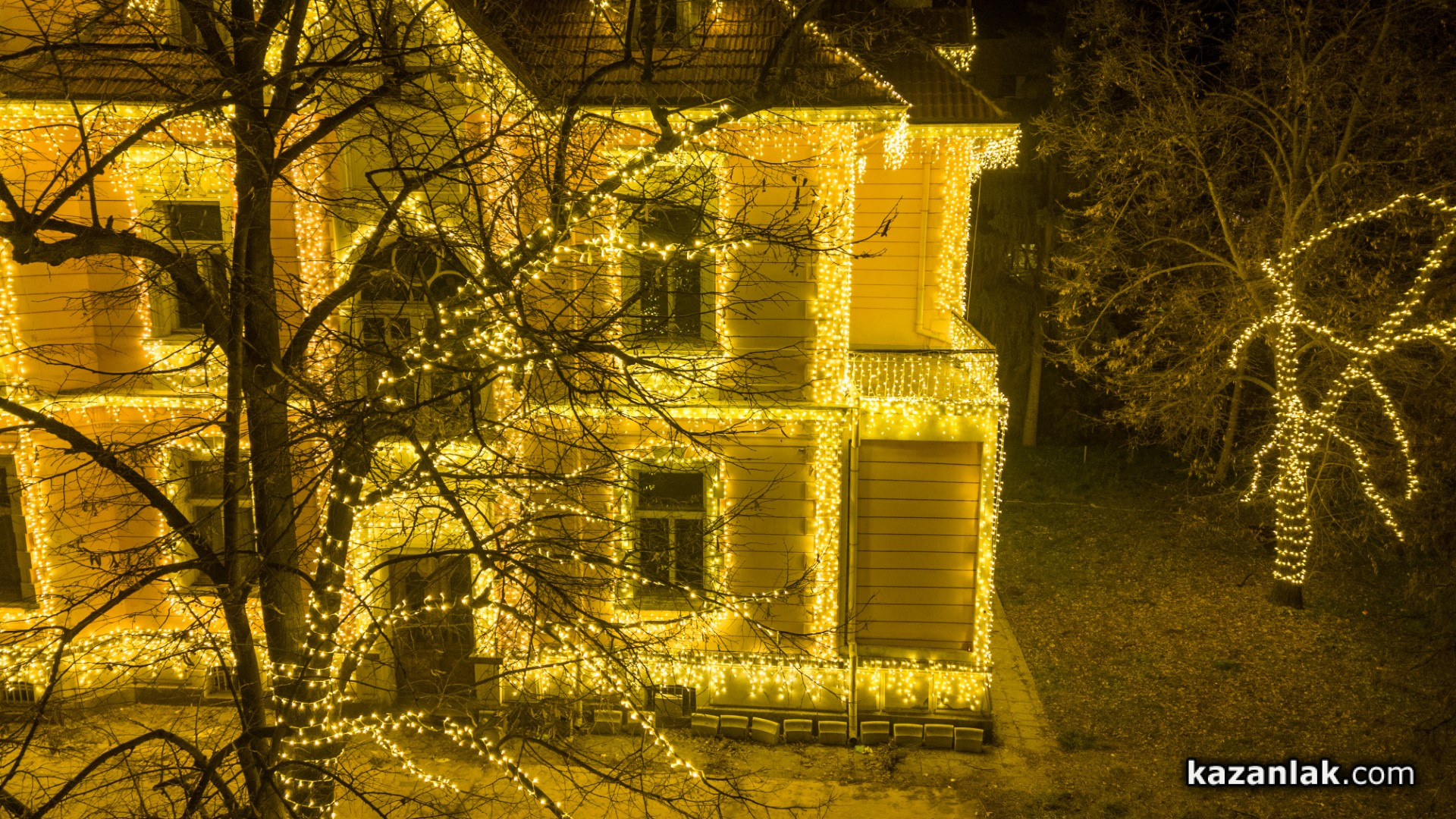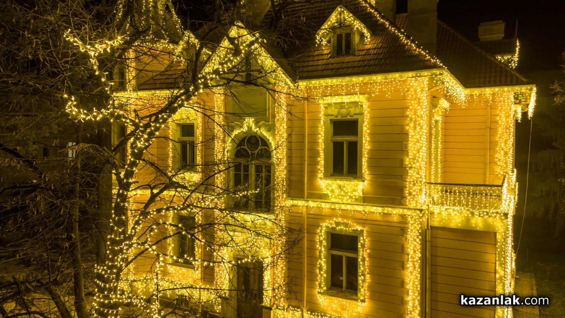 Историческата Шипкова къща в сърцето на Казанлък заблестя в празнични светлини и се превърна в една от най-очарователните коледни картини в Града на розите. По фасадата на емблематичния паметник на културата и по част от дърветата в двора са разположени десетки светлини, които създават топла, уют и привличат погледите на жители и гости на града.