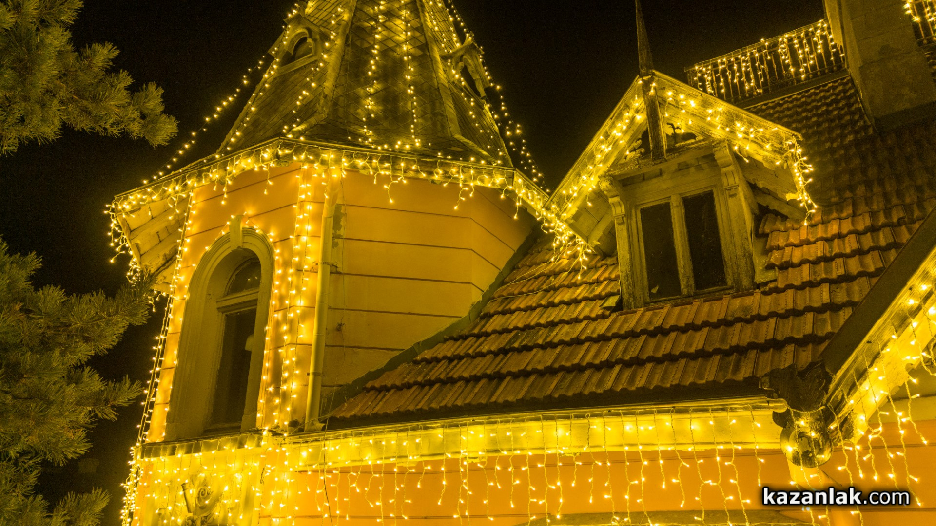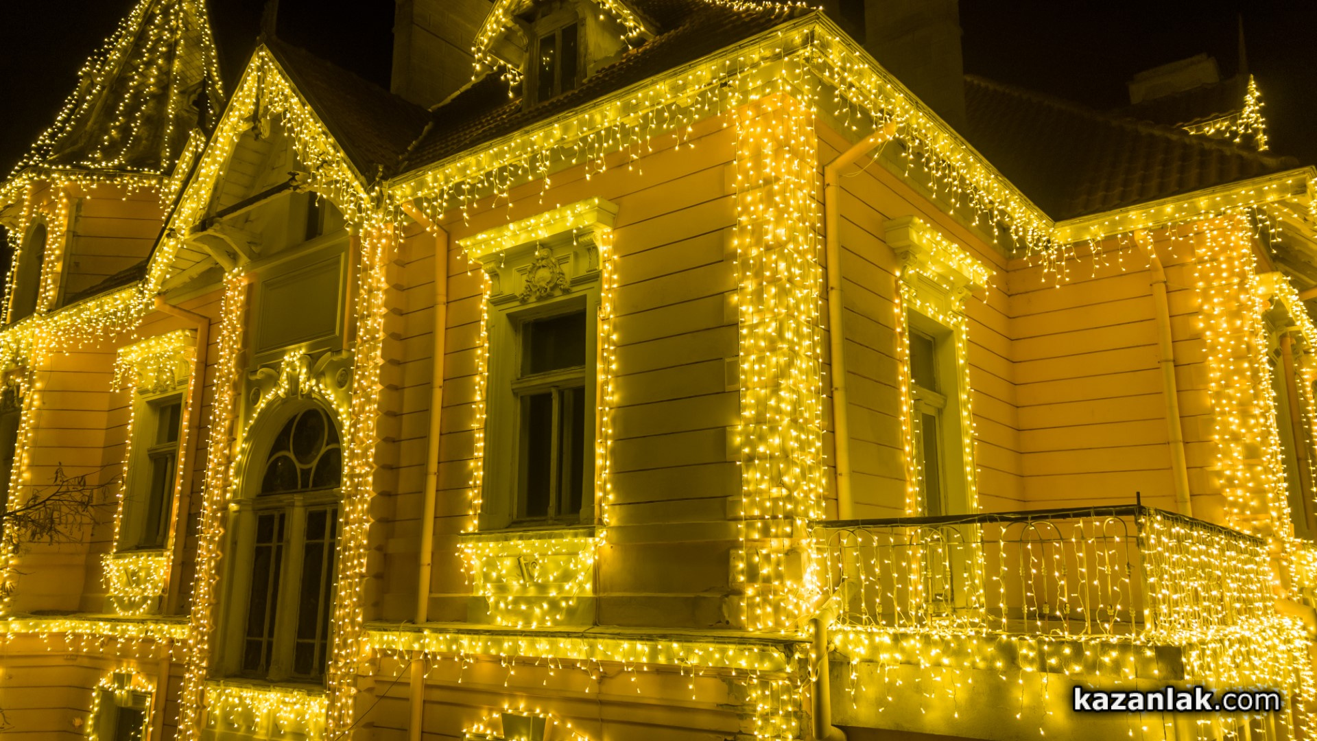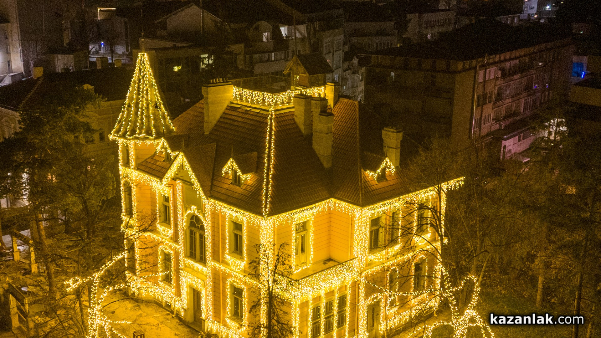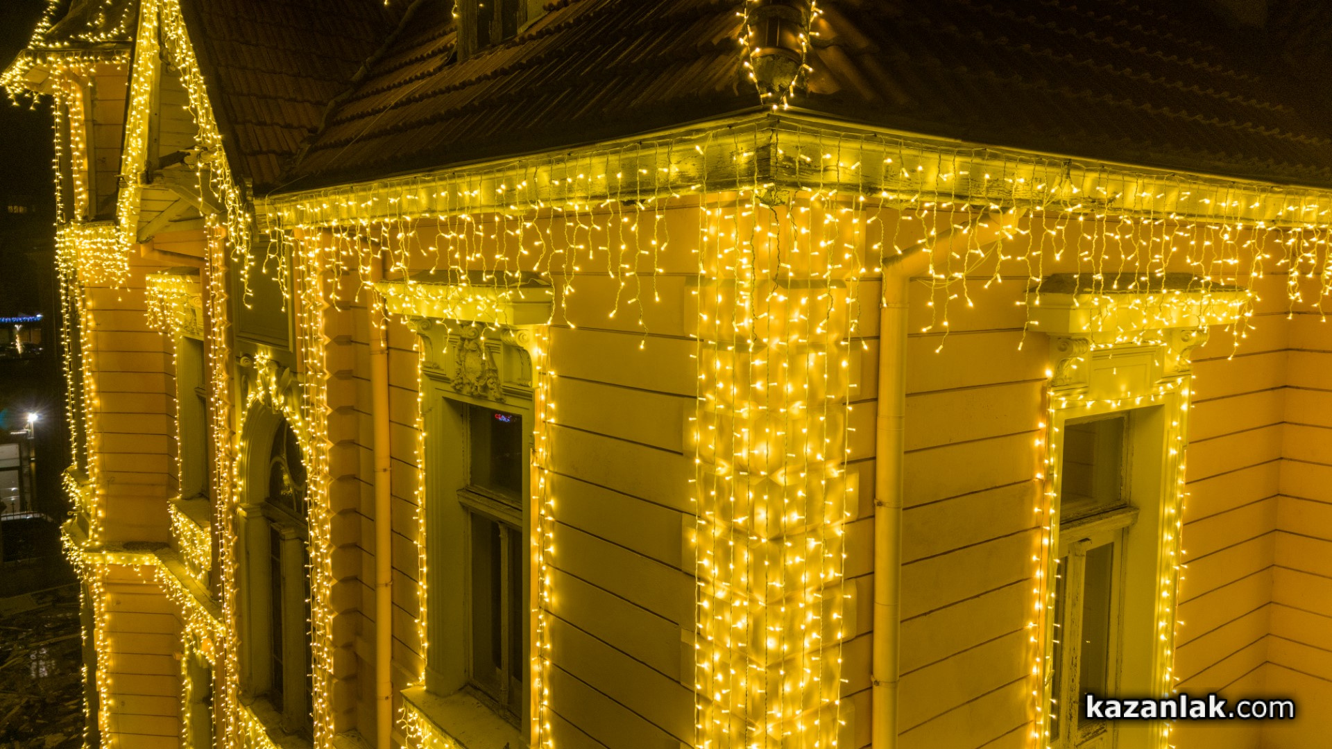 Историческата Шипкова къща в сърцето на Казанлък заблестя в празнични светлини и се превърна в една от най-очарователните коледни картини в Града на розите. По фасадата на емблематичния паметник на културата и по част от дърветата в двора са разположени десетки светлини, които създават топла, уют и привличат погледите на жители и гости на града.