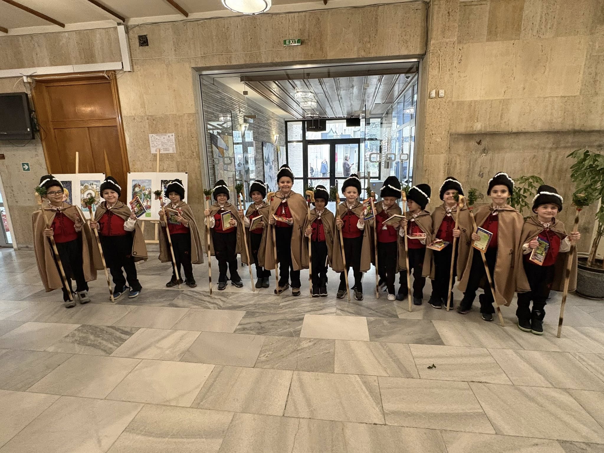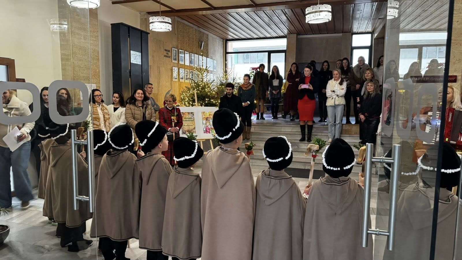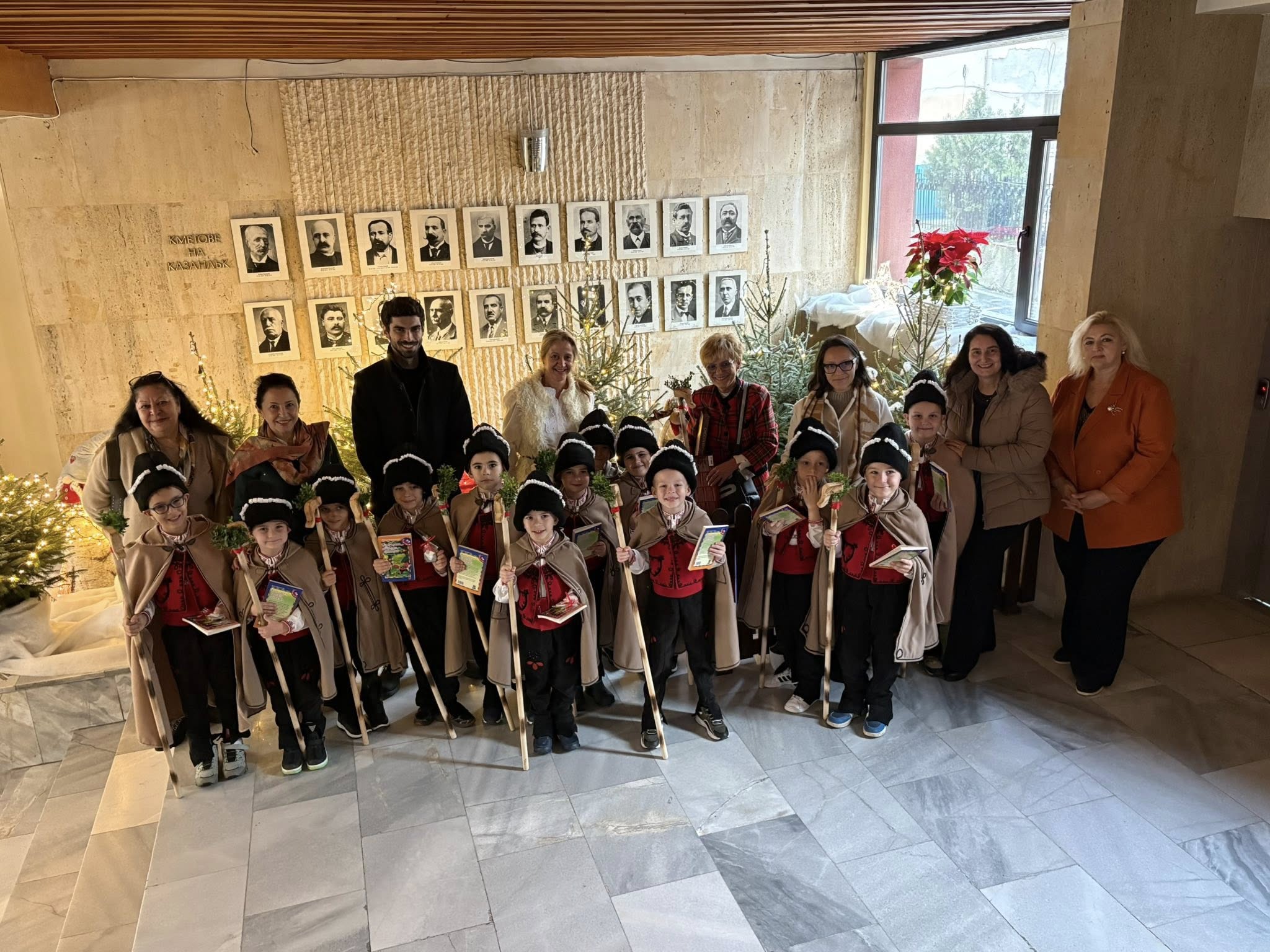 Малките коледари представиха традиционни коледни песни и наричания, с които благословиха за здраве, берекет и благополучие, като внесоха празнично настроение в сградата на общината.