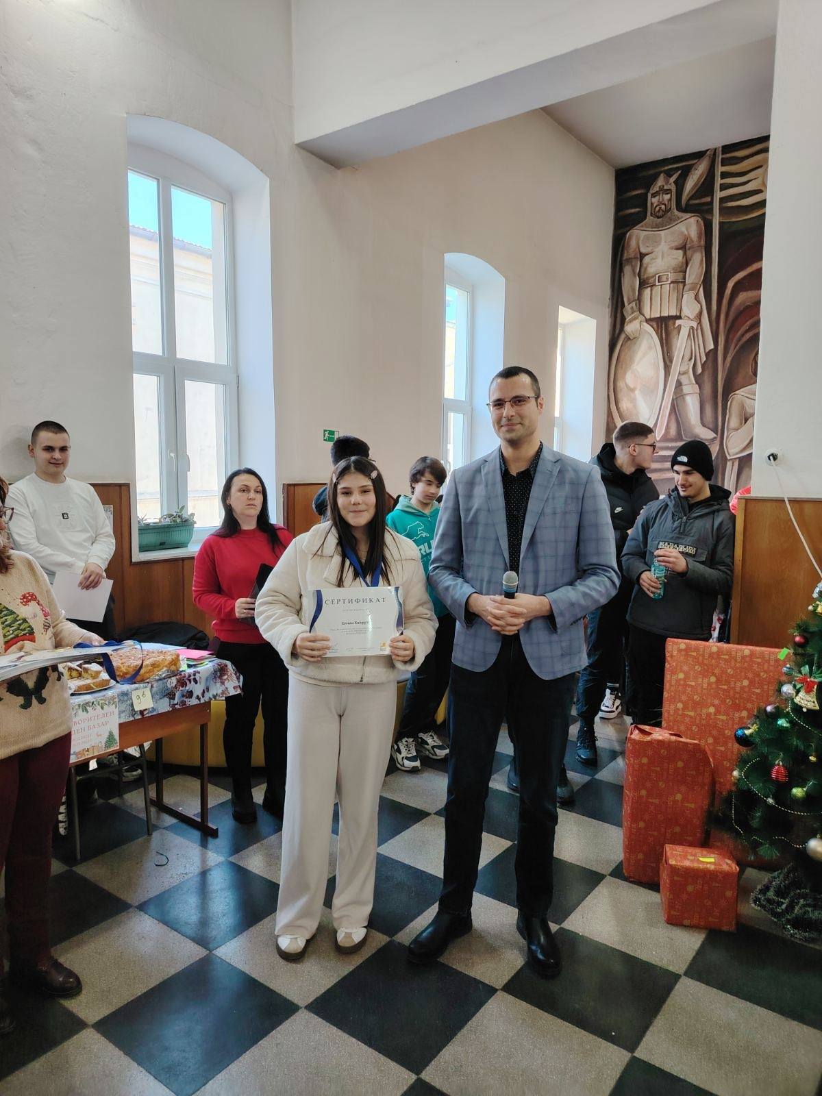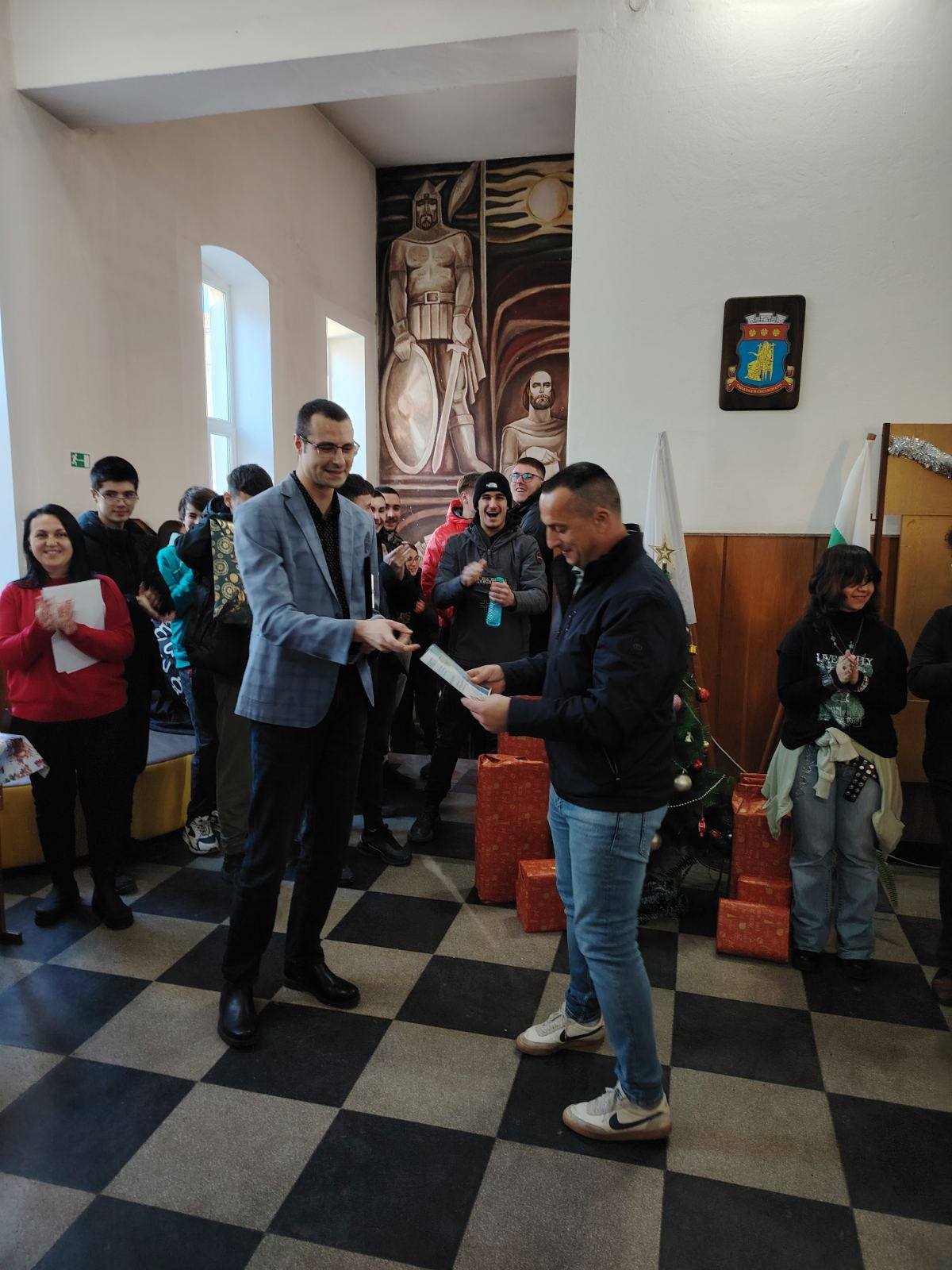 По време на откриването на Коледния благотворителен базар – г-н Тодоров връчи грамоти на изявили се ученици и учители, включвали се в различни мероприятия като: международни състезания, училищни дейности, конкурси и мероприятия, организирани от Община Казанлък както следва: