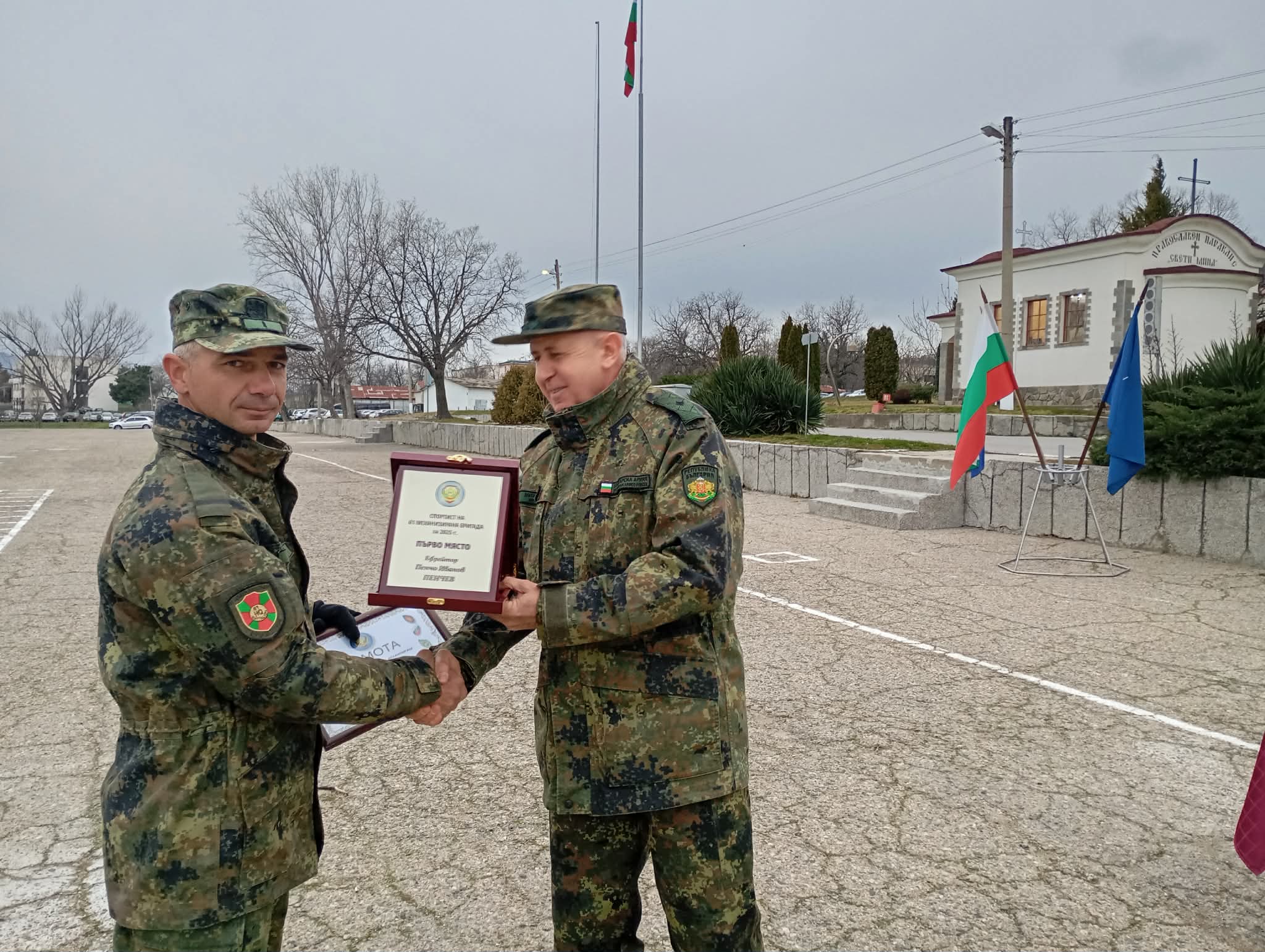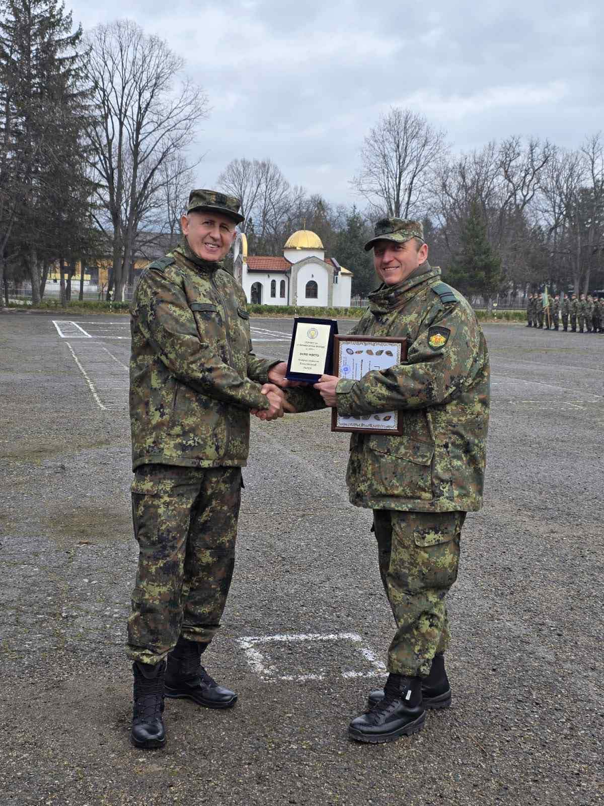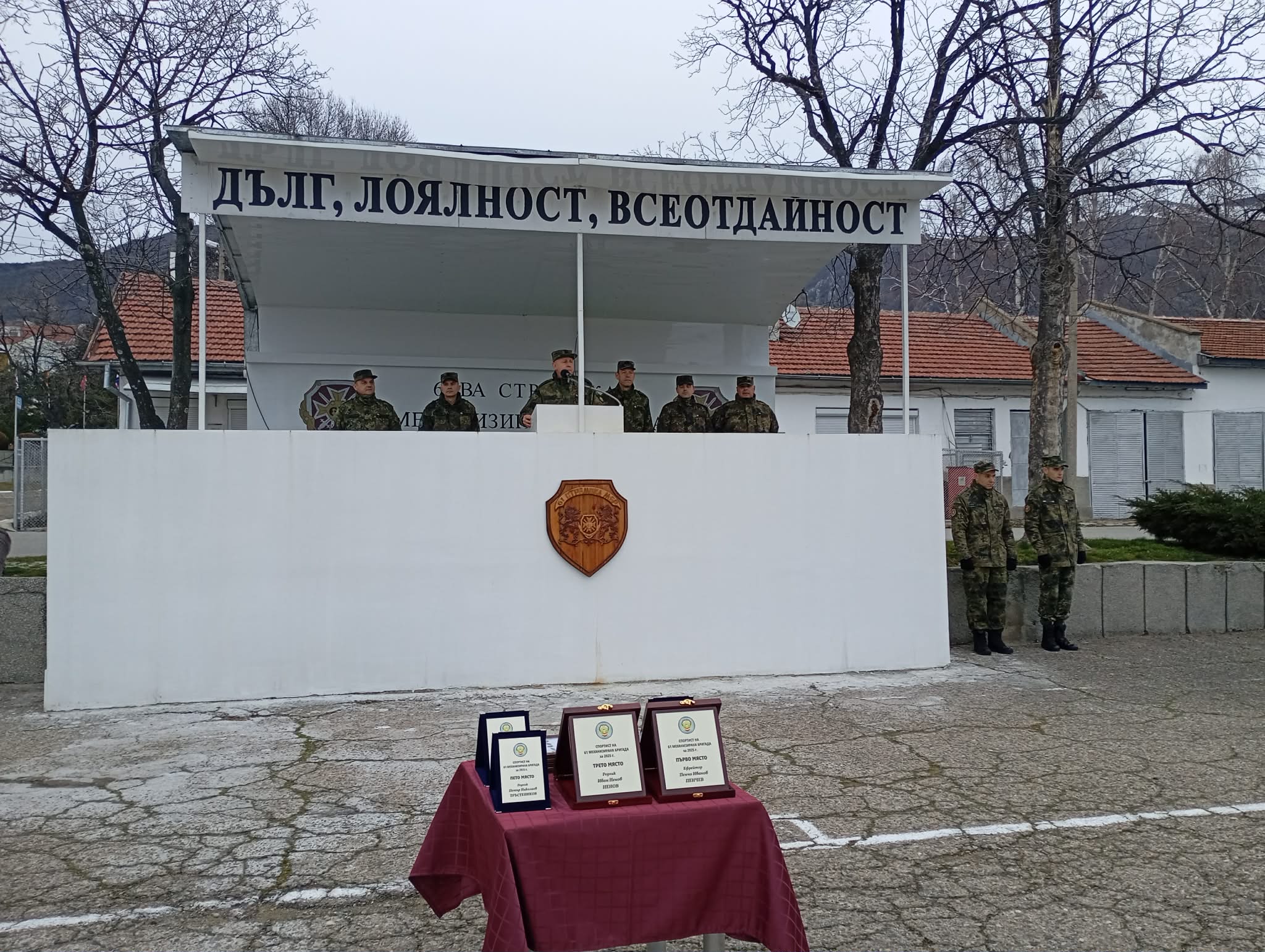 Беше прочетена заповед за награждаване на военнослужещи за постигнати високи резултати в държавните военни шампионати, първенствата от Националната военна спортна федерация, шампионати в Сухопътните войски и състезания в 61 механизирана бригада през 2025 година. За “Спортист на годината” беше обявен ефрейтор Пенчо Иванов Пенчев от щабен батальон, а негови подгласници станаха редник Наталия Перова Лазарова от самоходен артилерийски дивизион и редник Иван Ненов Ненов от зенитно-ракетен дивизион.
