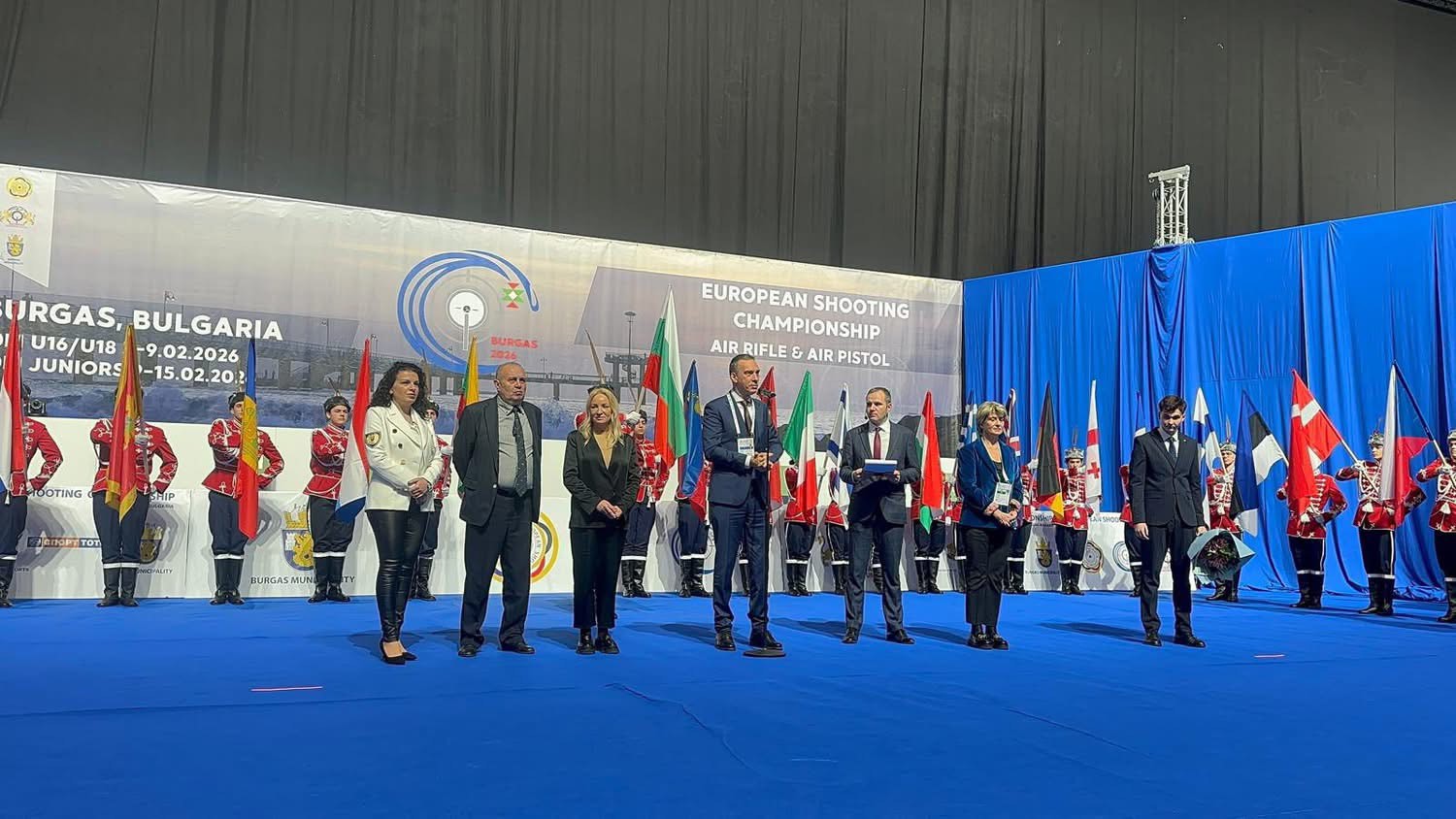 Председателят на Българския стрелкови съюз и вицепрезидент на Европейската конфедерация по стрелба Весела Лечева и кметът на Бургас Димитър Николов откриха Европейското първенство по спортна стрелба с въздушно оръжие за младежи, юноши и девойки, което ще се проведе в гр. Бургас от 4 до 14 февруари, съобщават от Българския стрелков съюз.