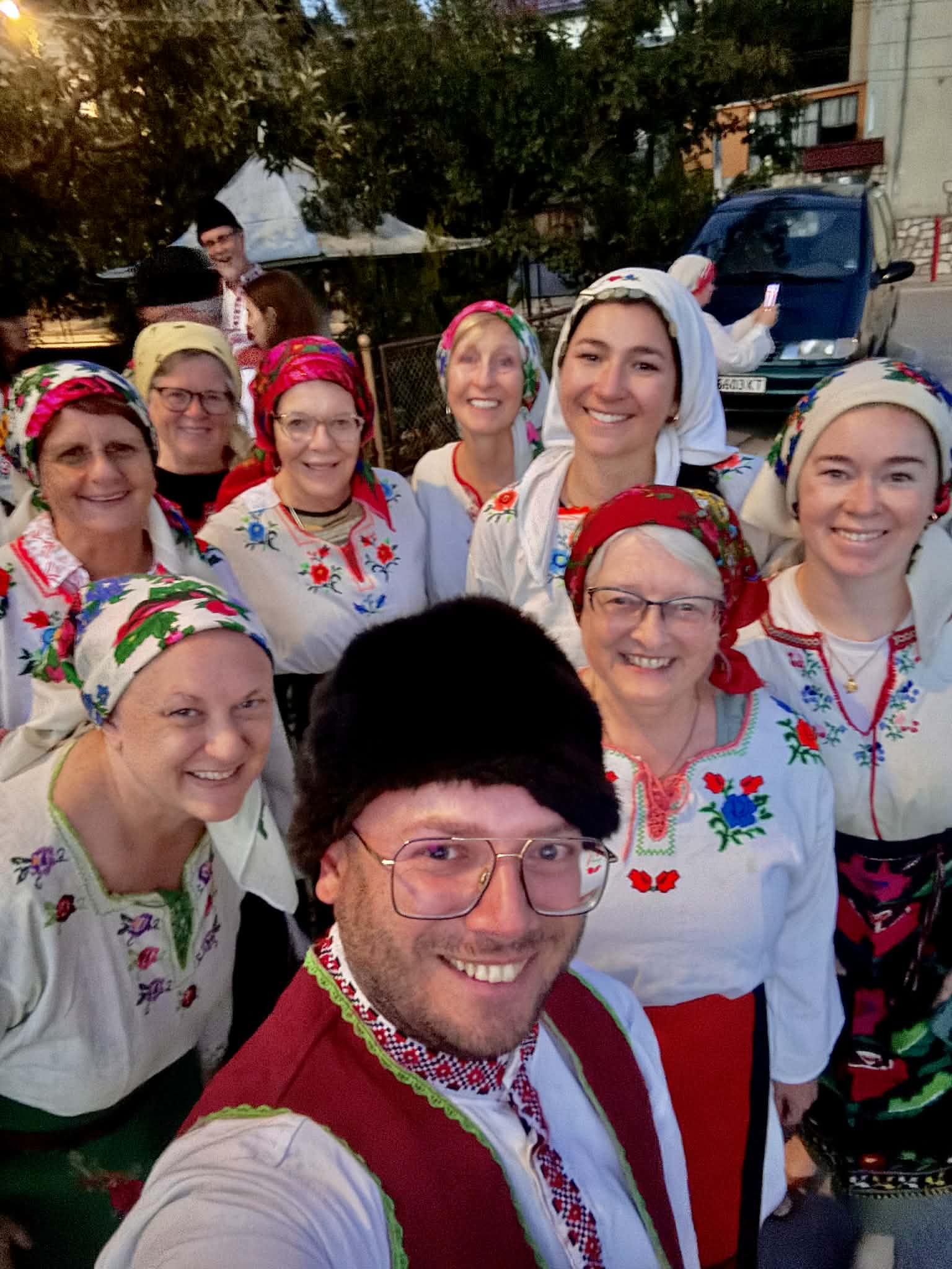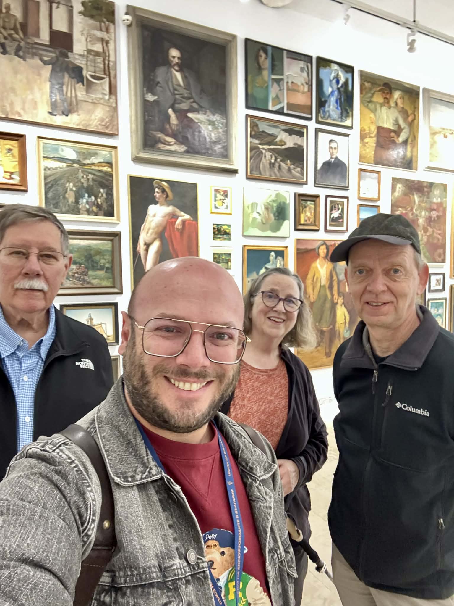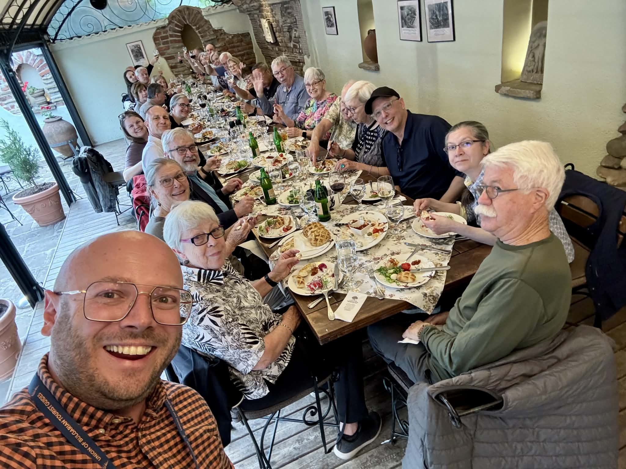 снимки: Стефан Бозаджиев (личен архив) - с група от първата пешеходна обиколка в Казанлък; с туристи из различни точки по света