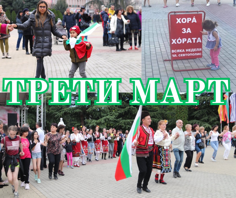 Голямо празнично хоро ще се извие на площад „Севтополис” на връх Националния празник на Република България - 3 март. Организаторите от сдружение „Приятели на фолклора” канят всички казанлъчани и гости на града на площада във вторник, 3 март, от 11:00 часа.