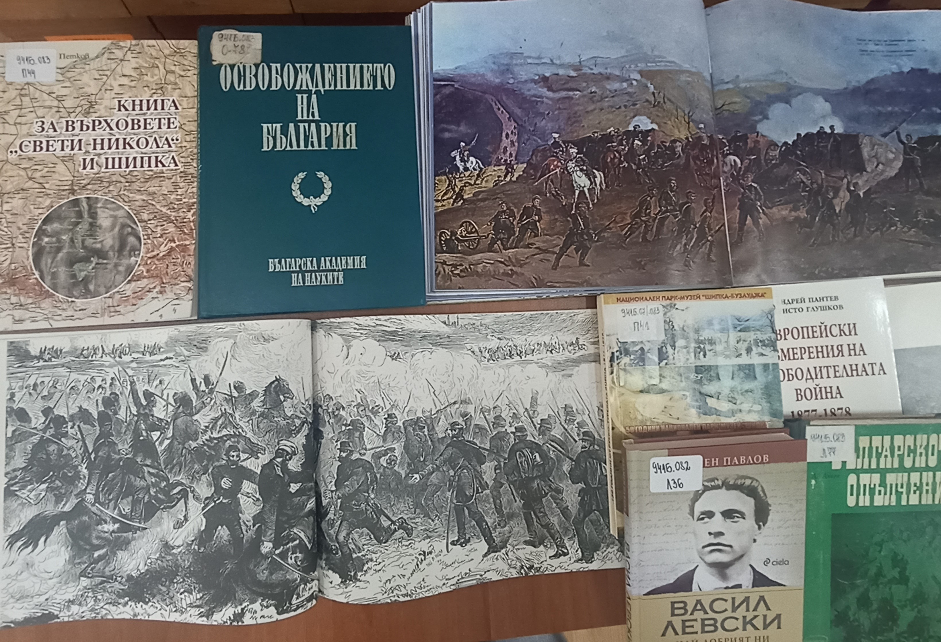 С табла и книги от фонда на библиотеката се проследяват героичните събития от последните дни преди извоюването на свободата. Едни от най-епичните битки, които са се водили в Казанлъшкия край и саможертвата на хиляди войни и български опълченци.