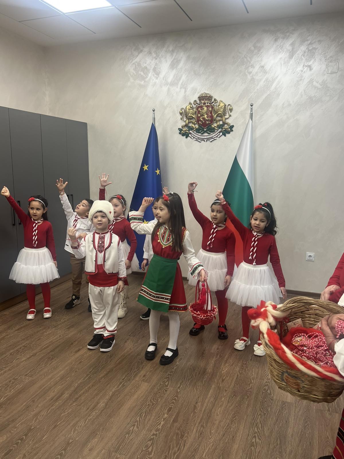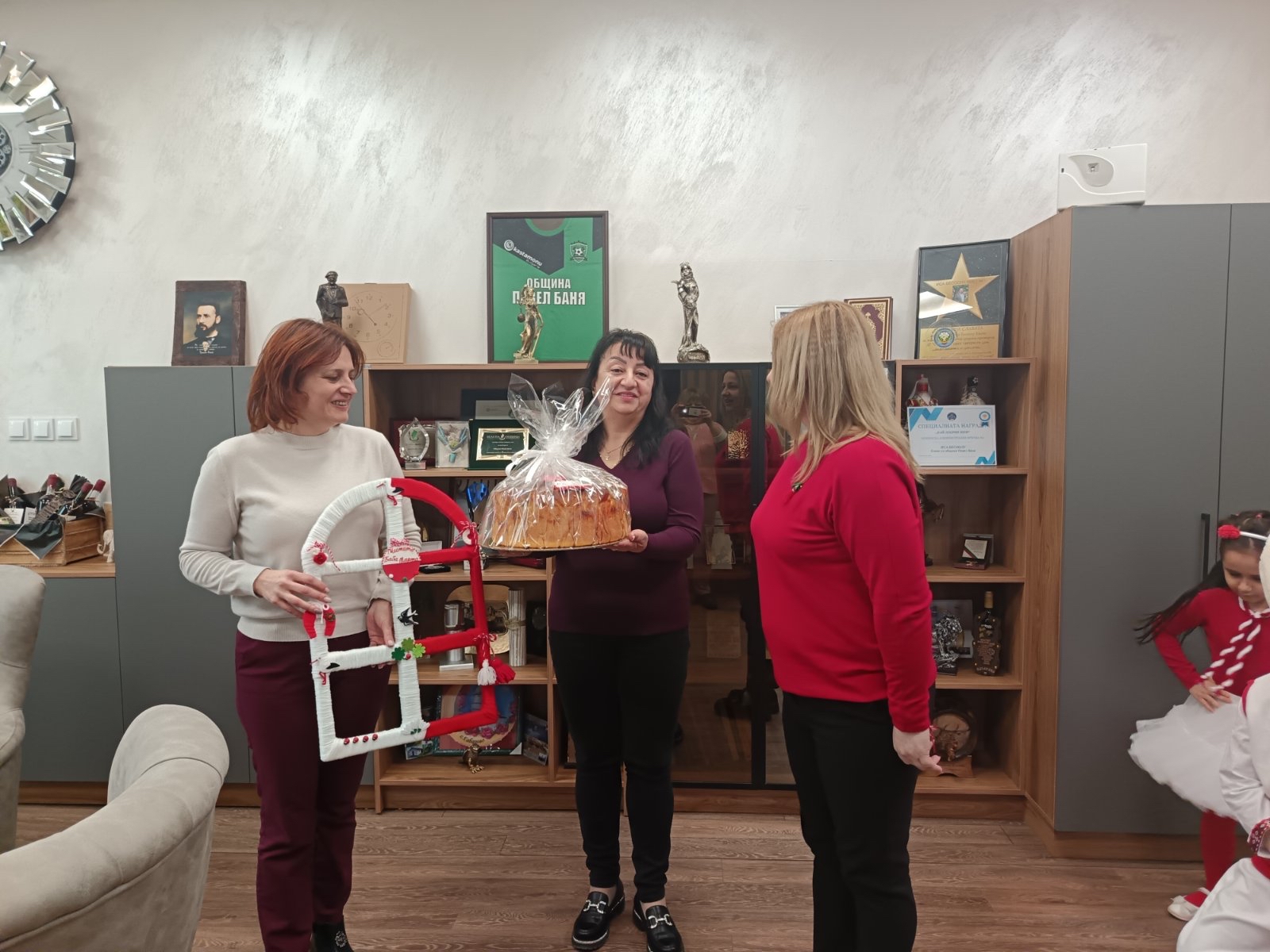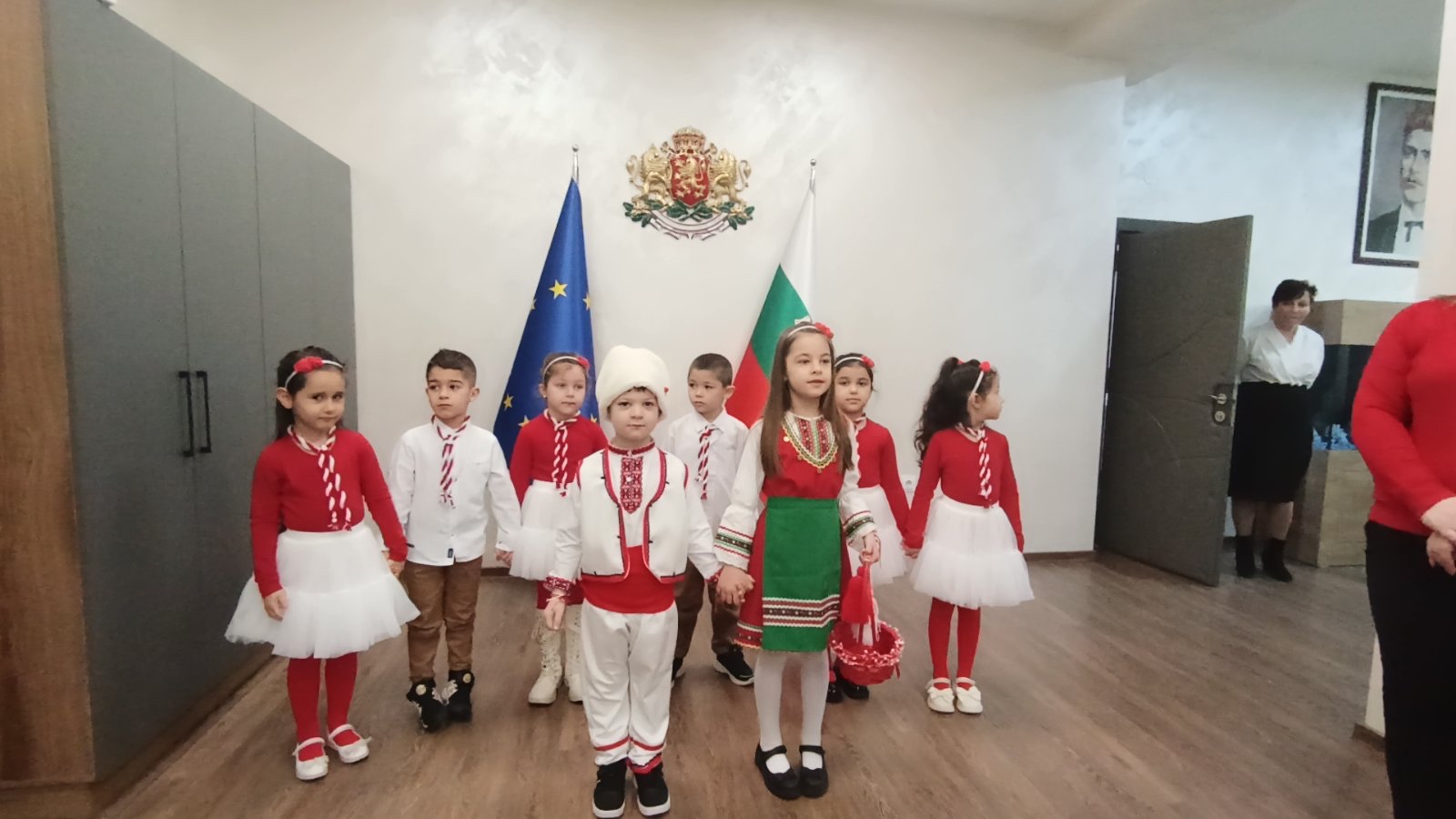 Заместник-кметовете Милена Кавръкова и Радка Иванова бяха приятно изненадани, но не и неподготвени. Освен че почерпиха малките гости, те им подариха мартенички с пожелание за здраве и много успехи. Малчуганите също ги даруваха с прекрасни мартенички, които донесоха усмивка по лицата на всички.