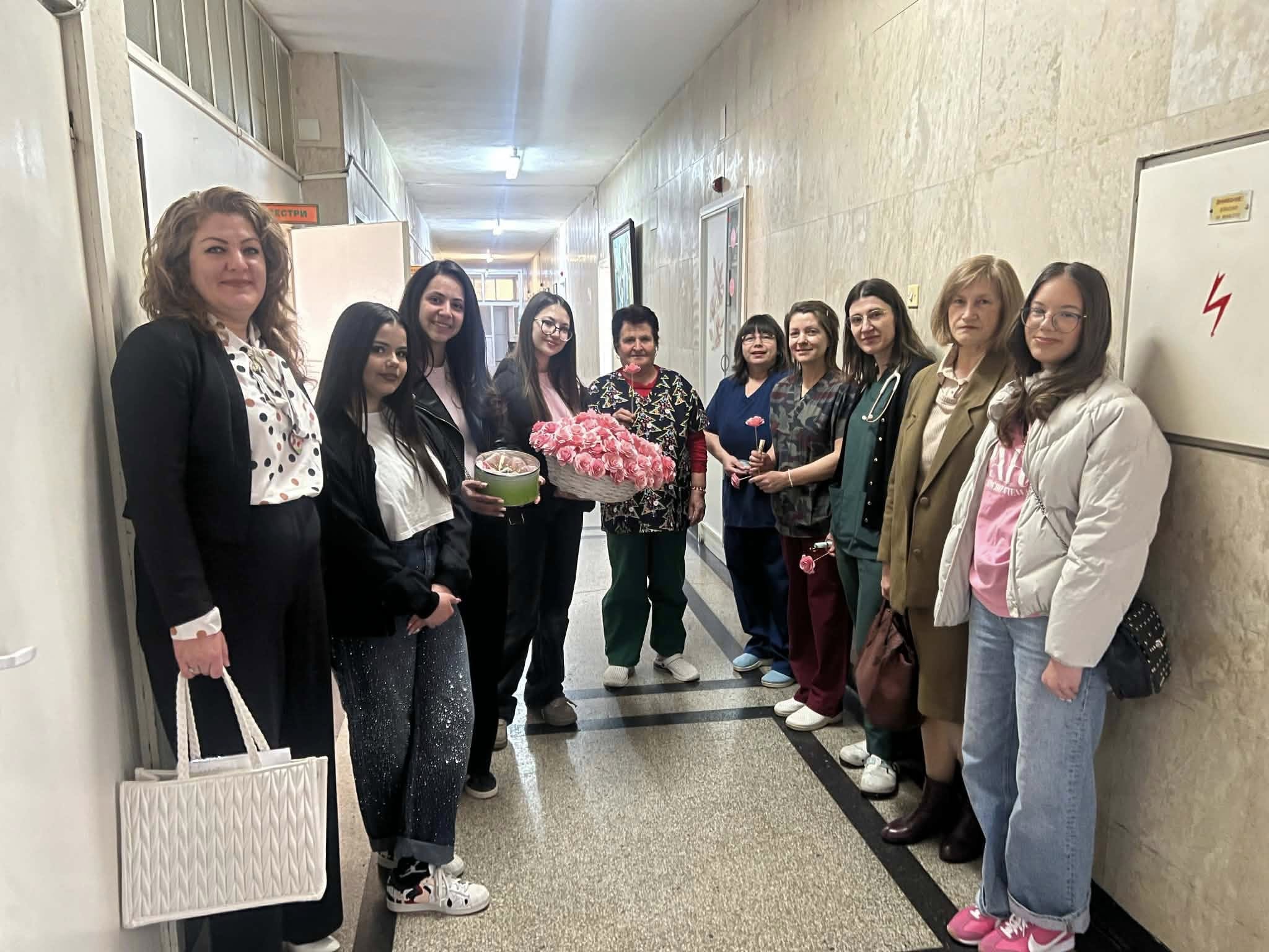 Първата спирка на доброволците беше казанлъшката болница „Д-р Христо Стамболски“, където те посетиха медицинските специалисти и служителките в лечебното заведение.