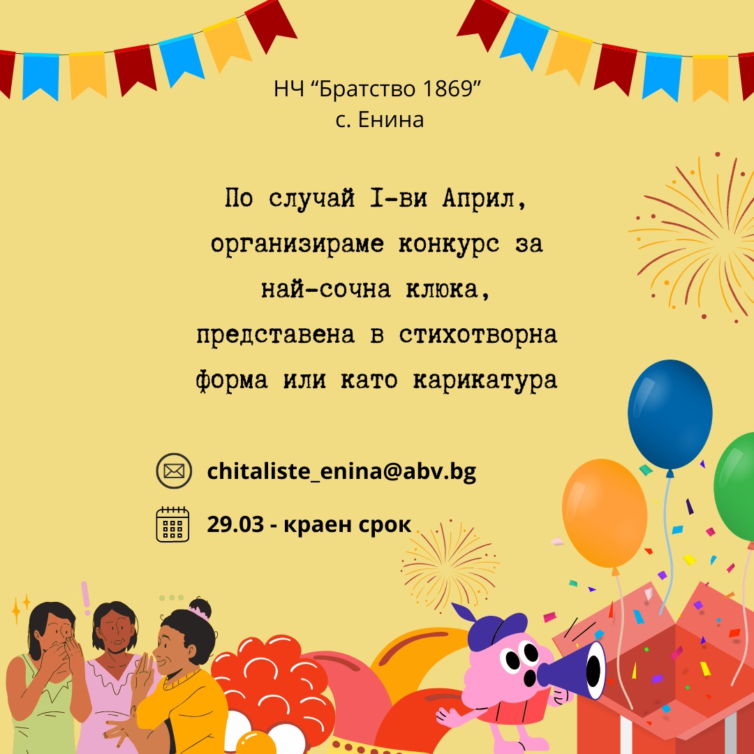 За трета поредна година НЧ “Братство 1869”, с. Енина организира конкурс за най-сочна клюка, в който участниците представят своите преживявания в стихотворна форма.
