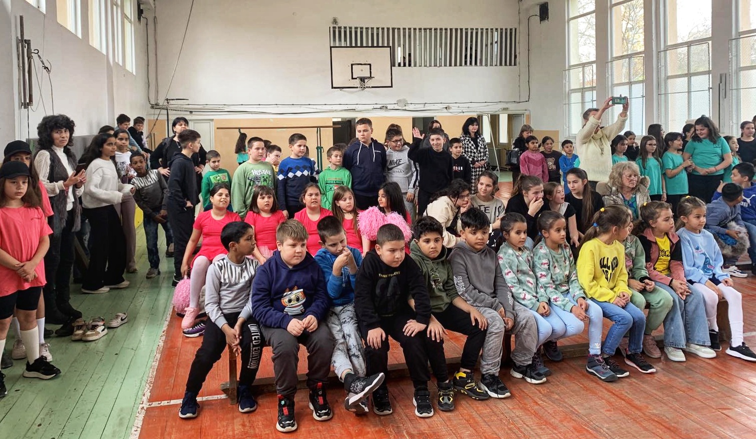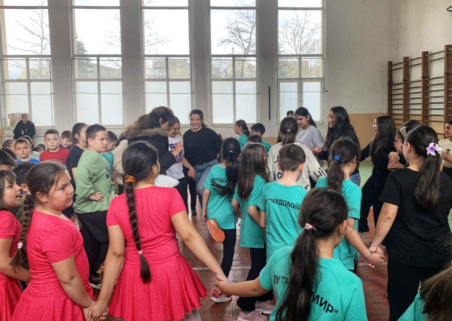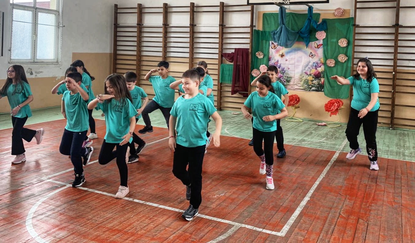 Гледката на деца, облечени в разноцветни фланелки и танцуващи в синхрон, бе най-доброто доказателство за духа на ОУ „Чудомир“.