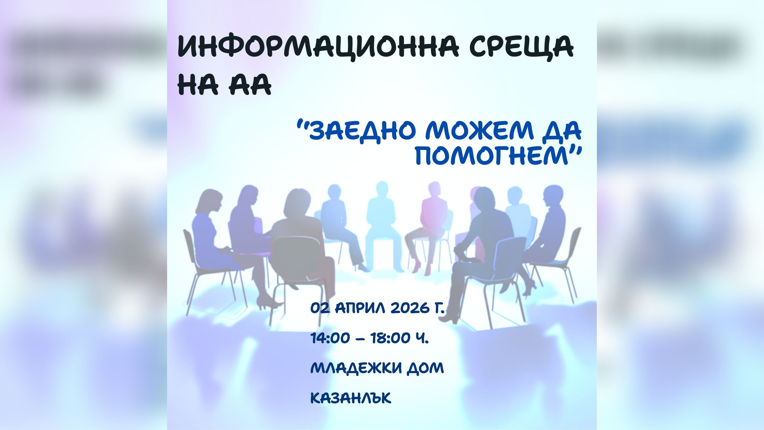 Вдъхновени от силния интерес, за втора поредна година Анонимни Алкохолици организират информационна среща в Казанлък, която ще се проведе на 2 април 2025 г., от 14:00 до 18:00 часа в Младежки дом, гр. Казанлък.