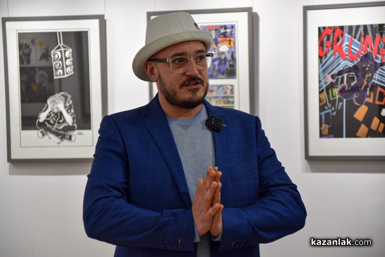 Авторът благодари на домакините от Музея на фотографията и Литературно-художествения музей „Чудомир“ и сподели, че се надява посетителите да оценят творческия път на „един скромен артист“. По думите му изложбата проследява процеса на създаване на героите - от първоначалните скици до завършените комикси. На стените са подредени колажи с подбрани рисунки и персонажи, част от които вече са намерили място в издадени книжни издания.