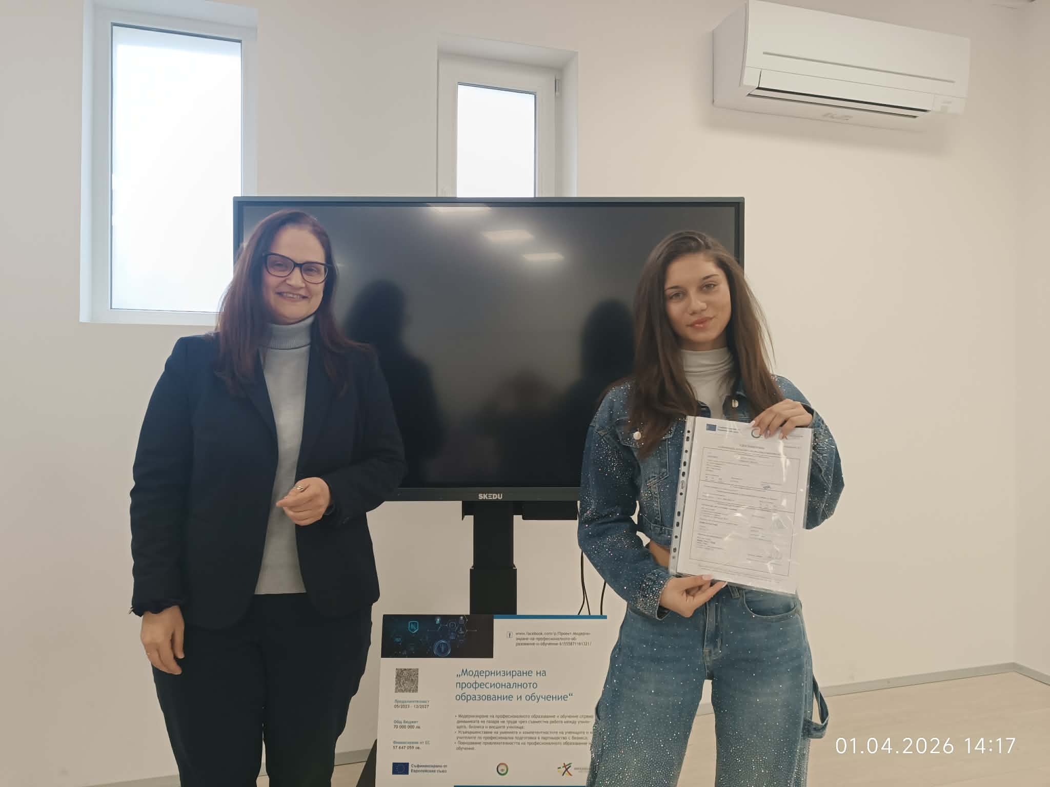 С успешно приключване завърши участието на Професионална гимназия по лека промишленост и туризъм – Казанлък в Дейност 8 по проект BG05SFPR001-3.001-0001 „Модернизиране на професионалното образование и обучение“, финансиран по Програма „Образование“ 2021–2027 и съфинансиран от Европейския съюз.