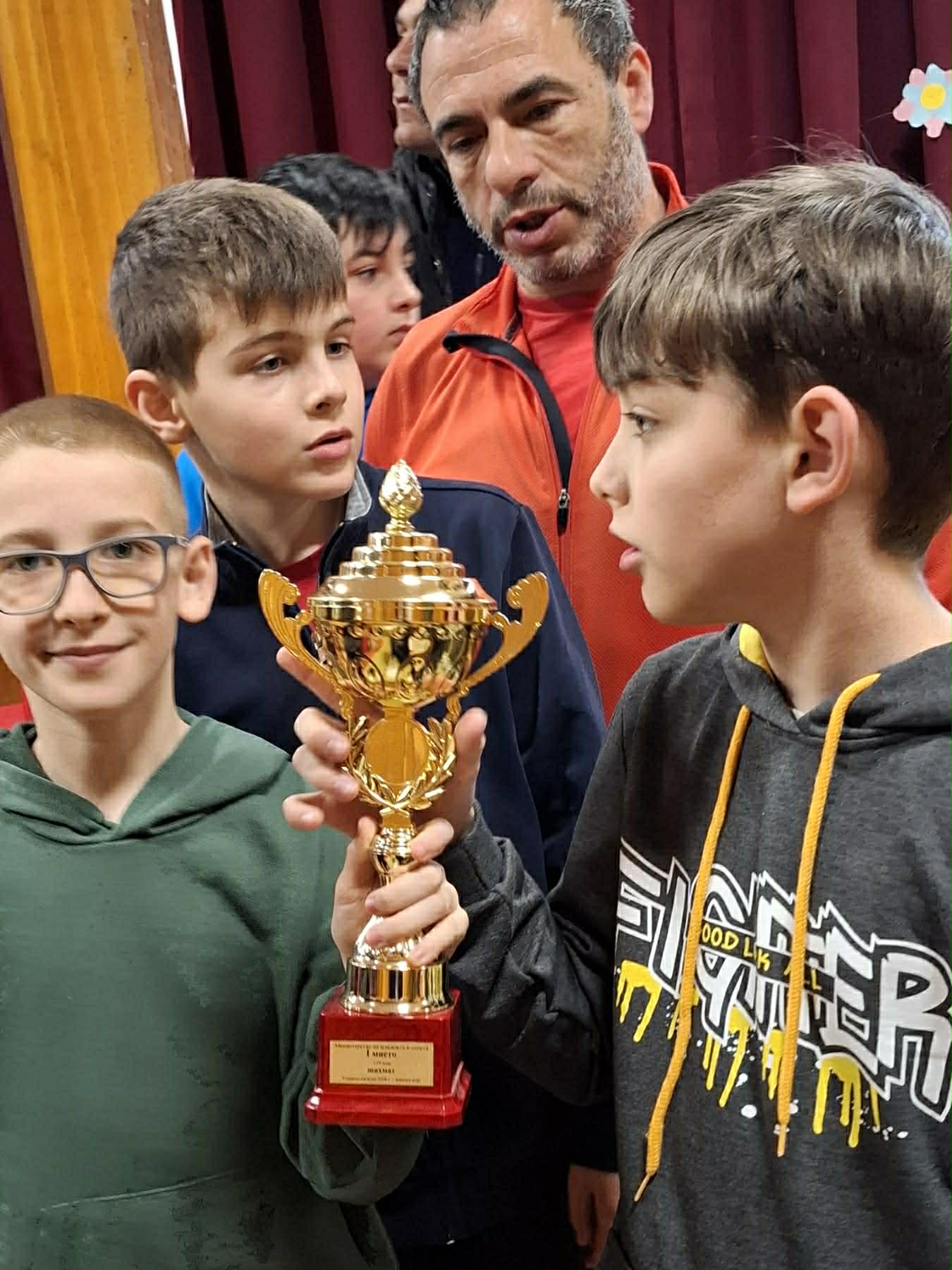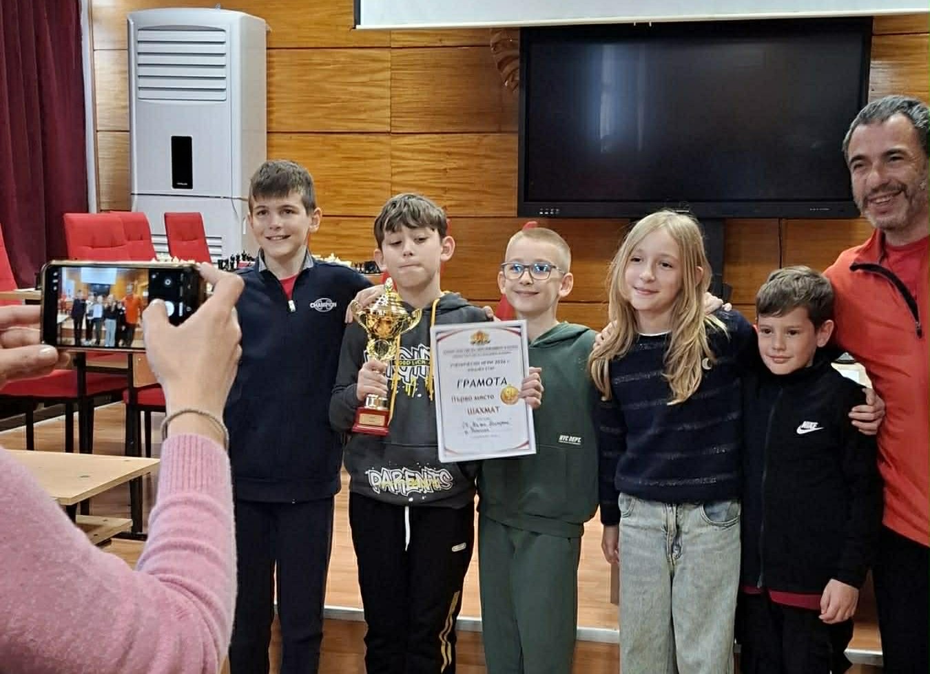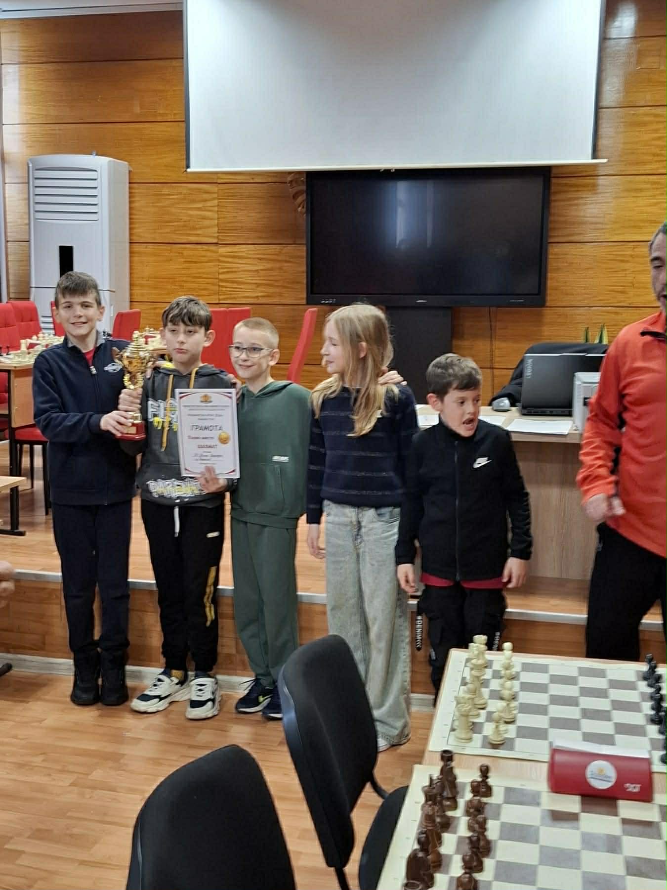 В състава на тима бяха Кенай Мустафов (2.В клас), Карин Ташева (3.А клас), Даниел Хаджиев (3.Б клас), Мартин Димитров (3.В клас) и Мете Мюмюн (4.В клас). Младите шахматисти постигнаха убедителни успехи срещу отборите на Хасково и Джебел с резултат 4:0.
