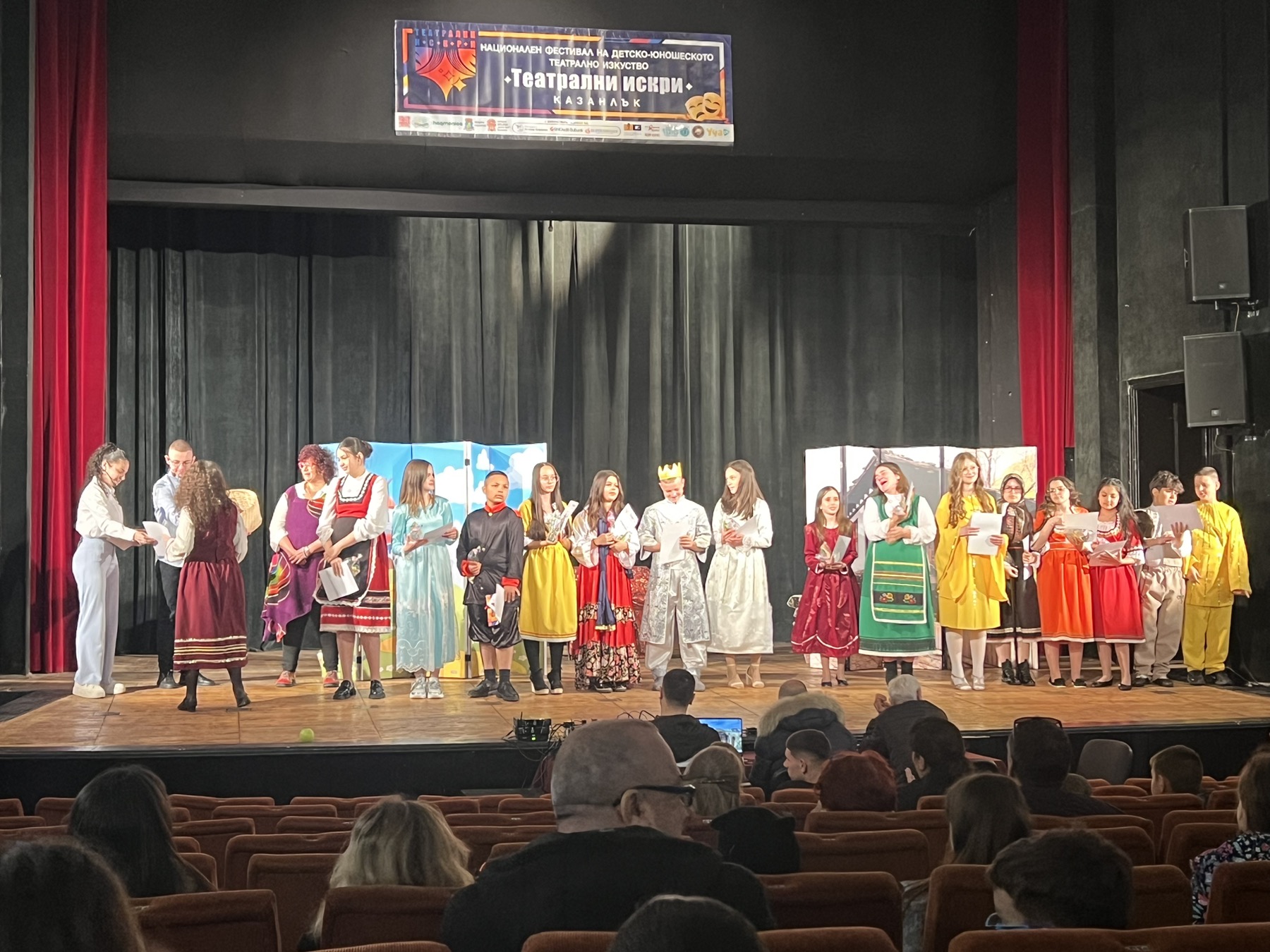 Театрално студио "Светът в детските длани" при ОУ" Мати Болгария", гр. Казанлък взе участие в четвъртия Национален фестивал "Театрални искри", чието начало бе поставено вчера, в казанлъшкото Народно читалище "Искра-1860". Младите театрали представиха постановката "Неродено мома", с която беше открит формата.