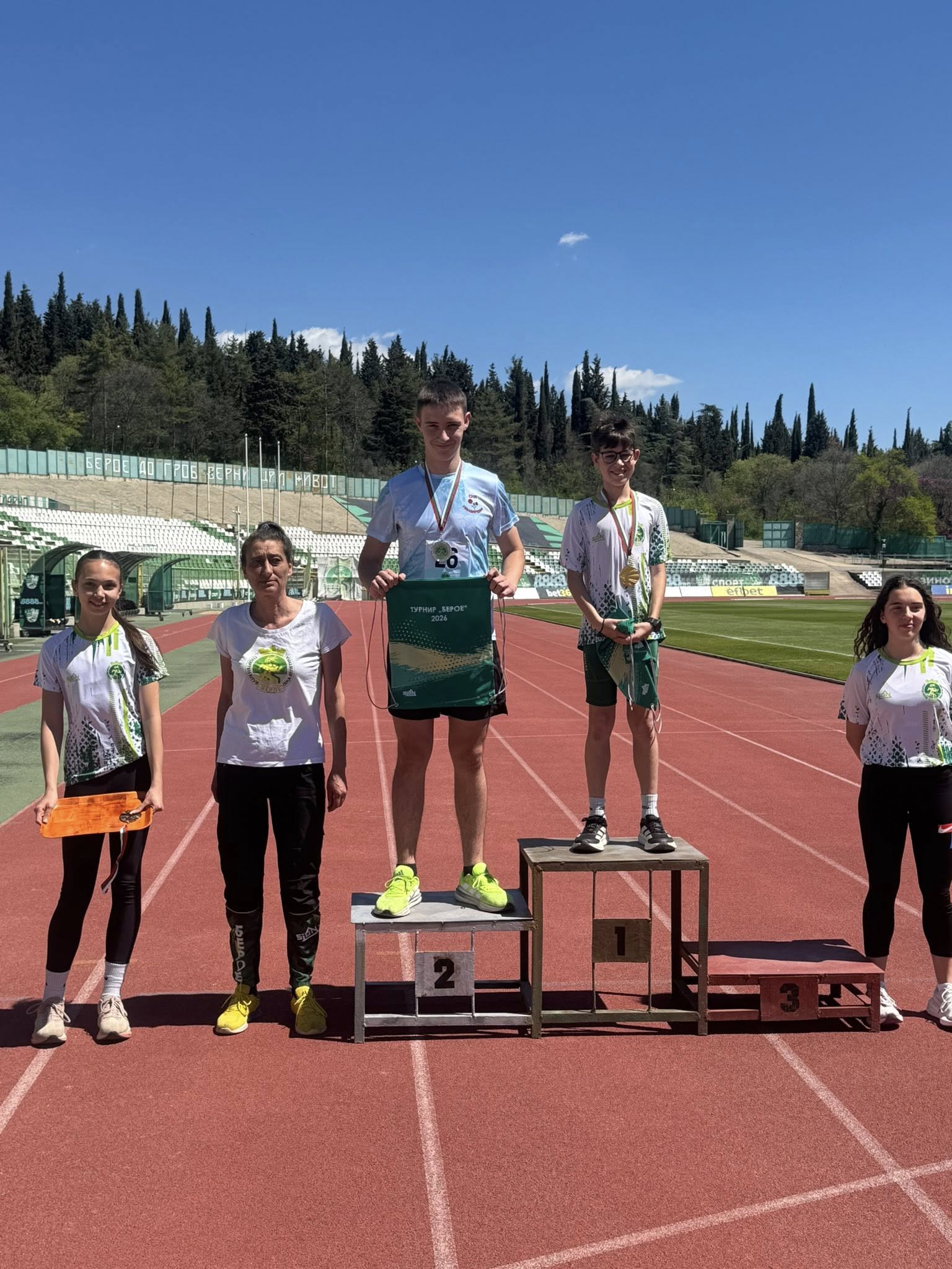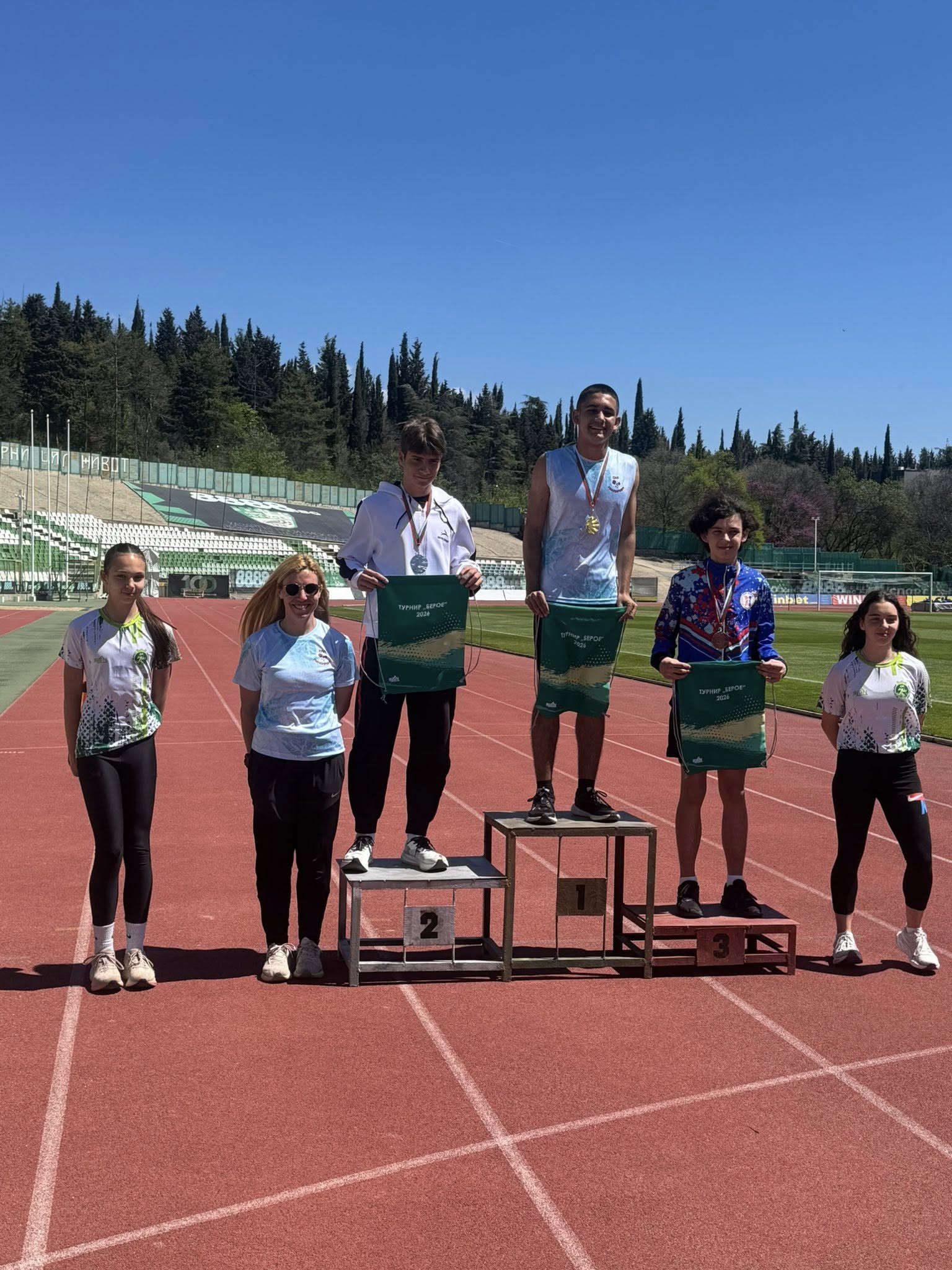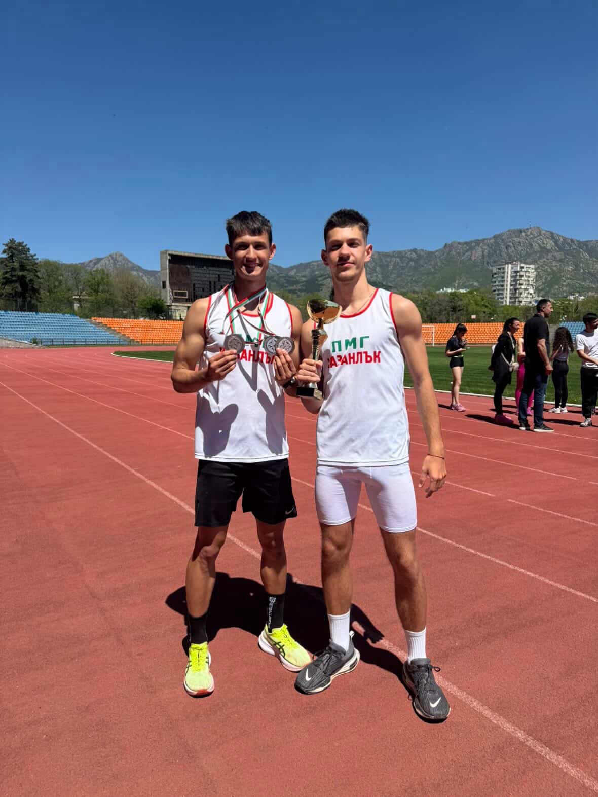 Валентин Христов и Ивайло Иванов, заедно със своя отбор от ПМГ “Никола Обрешков”, достигнаха финалите на Ученическите игри по лека атлетика за 11–12 клас и представиха достойно своето училище.