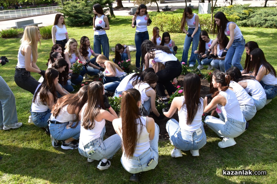 Претендентките за короната на „Царица Роза 2026“ разкрасиха Розариума в Казанлък, като засадиха стръкове от емблематичното за града цвете - розата.