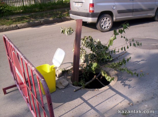 Опасна и необезопасена шахта тормози вече четвърти ден шофьорите от Казанлък. Шахтата се намира в непосредствена близост до Спешната помощ в града и Професионалната гимназия "Иван Хаджиенов".