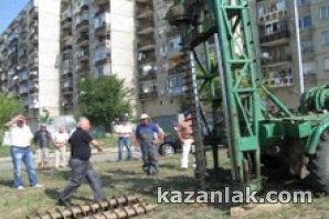 Строителството започна със сондаж за намиране на собствен водоизточник до бл. 24 в присъствието на кмета на община Казанлък, служители от ССТТБО, граждани от квартала.