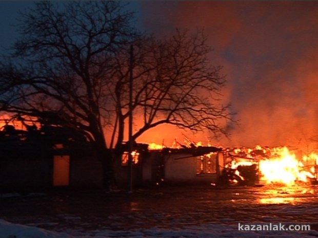 Пожар , възникнал тази вечер в кооперация „Съгласие" на едно от най- големите села на община Казанлък -Енина, изпепели напълно краварниците. В пламъците изгоряха и 30 от 50-те крави, намиращи се в тях.