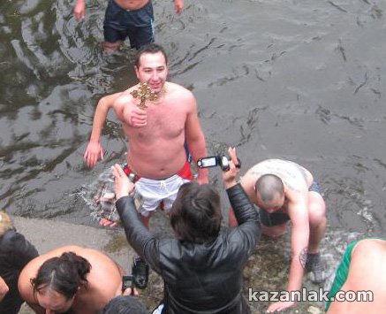 Сред всички 16 смели мъже и момчета от Казанлък, хвърлили се в студените води на Старата река, късметът се усмихна на 25-годишния Костадин Димитров. Седем пъти се е хвърлял за кръста младият мъж, но тази година за първи път успява да го хване. Всъщност, масивният железен кръст потъна във водите на реката и повече от 10 минути всички 16 смелчаци претърсваха дъното, за да го открият . Накрая се хванаха на мъжко хоро, водата се успокои и Костадин Димитров бе късметлията, който го откри. Мъжът е от Казанлък, служител е в офис на компания за мобилни телефони. Най-младият участник в надпреварата бе 15-годишният Стефан Ноев, а едно от момчетата бе дошло на Старата река направо от леденото мъжко хоро в Калофер.