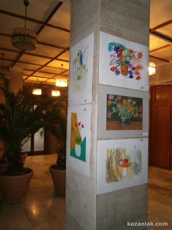 От началото на тази седмица в Община Казанлък започват по оптимистично работните дни. Още с влизането си си в сградата на Общината работници и посетители стават свидетели на детска изложба на картини. Тя е на деца от Школата по изобразително изкуство при НЧ „Възродена Искра 2000“.