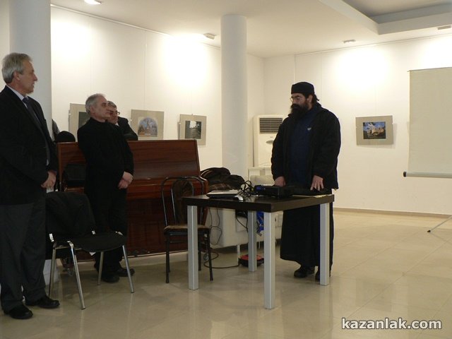 Директорът на Художествената галерия в Стара Загора д-р Марин Добрев накратко обясни на посетителите за всички 20 манастира в Света гора. Свои разкази за Атон и неговата сила направиха още старозагорецът Димо Узунов и монах Пимент - един от монасите в българския манастир. Отеца бе изслушан с внимание от всички, като той обясни защо манастира е наричан от всички „Дома на Свети Георги“.