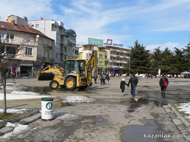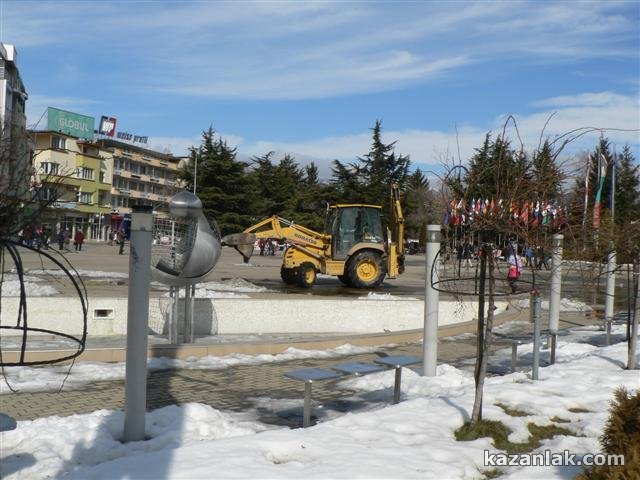 Днес службата отговаряща за чистотата в Казанлък отстрани снега от площад „Севтополис” . Снегът бе изчистен с багер и натоварен на камиони, които го извозиха.