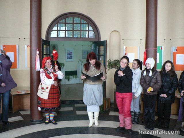 Изложбата бе открита от Директорът на библиотеката в Казанлък – Анна Кожухарова, която представи участниците. Децата бяха забавлявани от Дора Петкова от НЧ“ЖАР“, която облечена като Баба Марта закичи гостуващите и дълго време обяснява на младежите за българските традиции на 1 март. В изработването на мартениците, които бяха изложени участваха ученици от : ОУ“Георги Кирков“, ОУ“Мати Болгария“, НЧ“Братство“ село Енина и НЧ“Цвятко Радойнов“ село Крън.