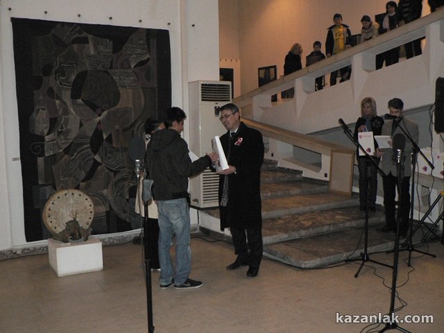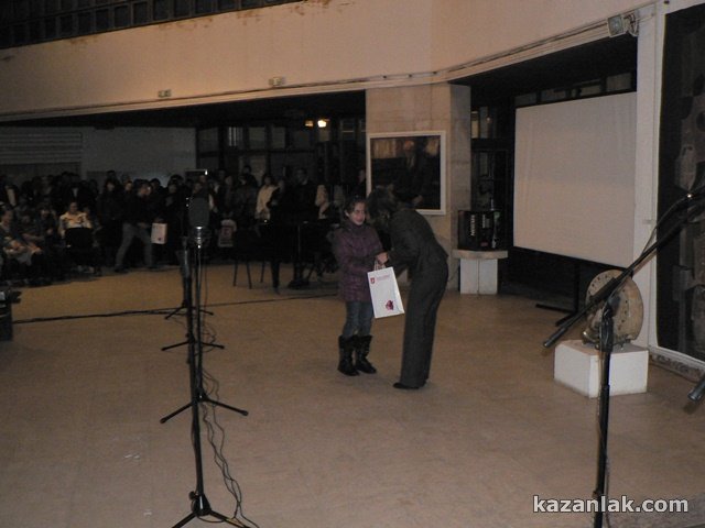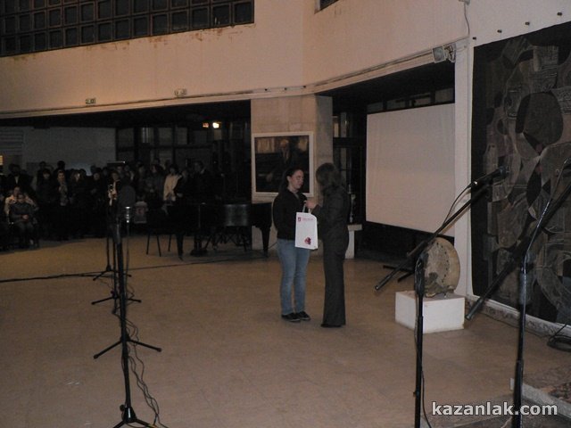 С празничен концерт „Благослов за Свободата“ снощи в Художествена галерия–Казанлък, започна отбелязването на днешния Национален празник на страната ни. Събитието бе уважено от казанлъшкият депутат Емил Караниколов, кмета на Общината Галина Стоянова, Заместник кметовете Петър Косев и Даниела Коева и ред други видни личности. Залата се оказа тясна за дошлите стотици казанлъчани, които сведоха глава в знак на прстнателнот към загиналите за освобождението на България. В началото бе излъчен късометражен филм изработен от студио „Вифор“ –„Паметници на признателността“. Последва изпълнение на вокална група „Севтополис“ на песента „Връх на героична слава“, след което бяха връчени наградите от конкурса за рисунки и есета на тема „Признателност, поклон и памет“, организиран съвместно от Община Казанлък и НПМ“Шипка – Бузлуджа“.
