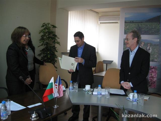 За спомен от Казанлък представителят на Държавния департамент на САЩ получи от кмета на общината богато илюстрования албум „Долината на розите и тракийските владетели”, а Кен Московиц искрено се зарадва на албума „България от птичи поглед”, чийто автор е казанлъшкият фотограф-художник Александър Иванов.